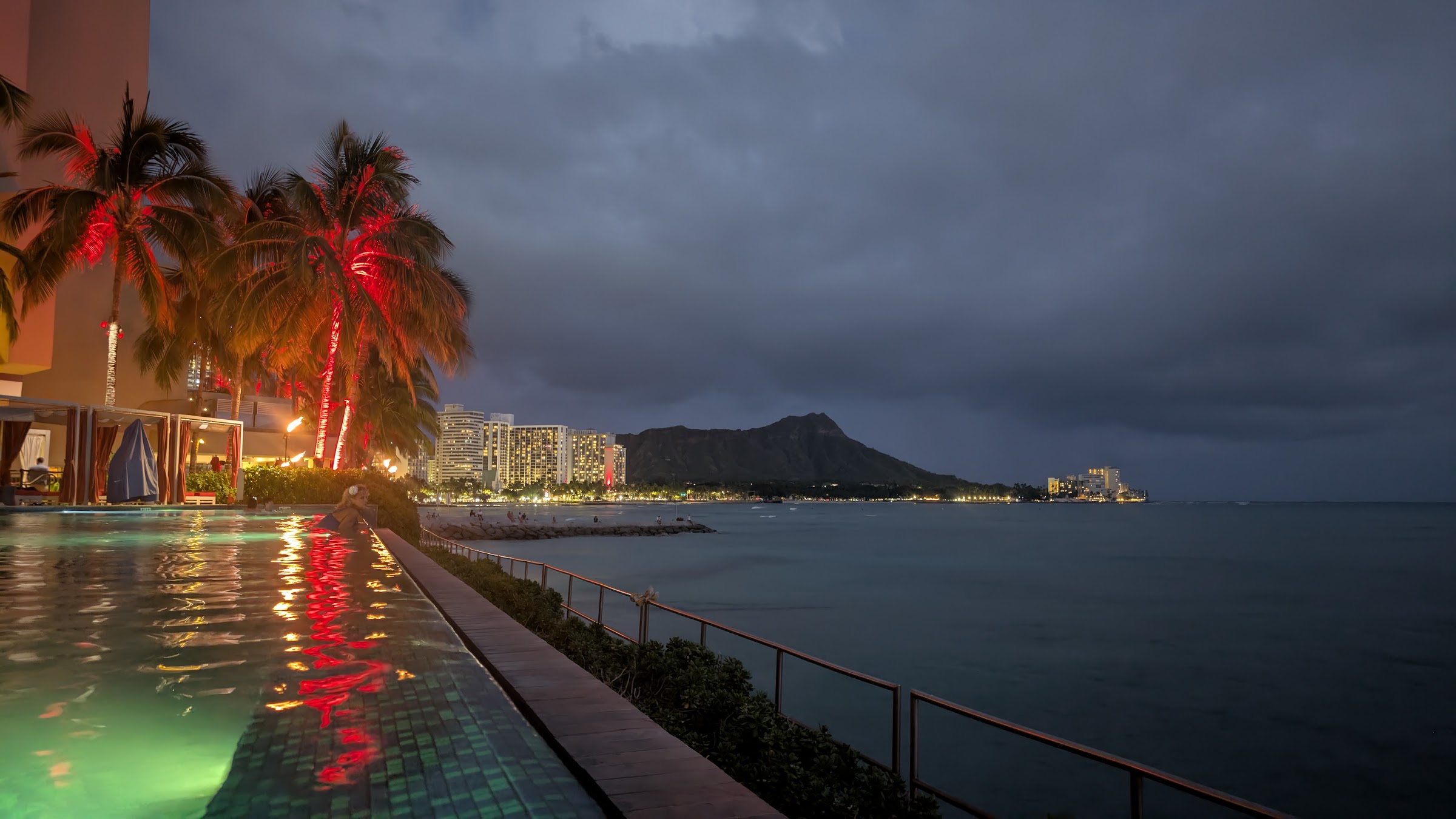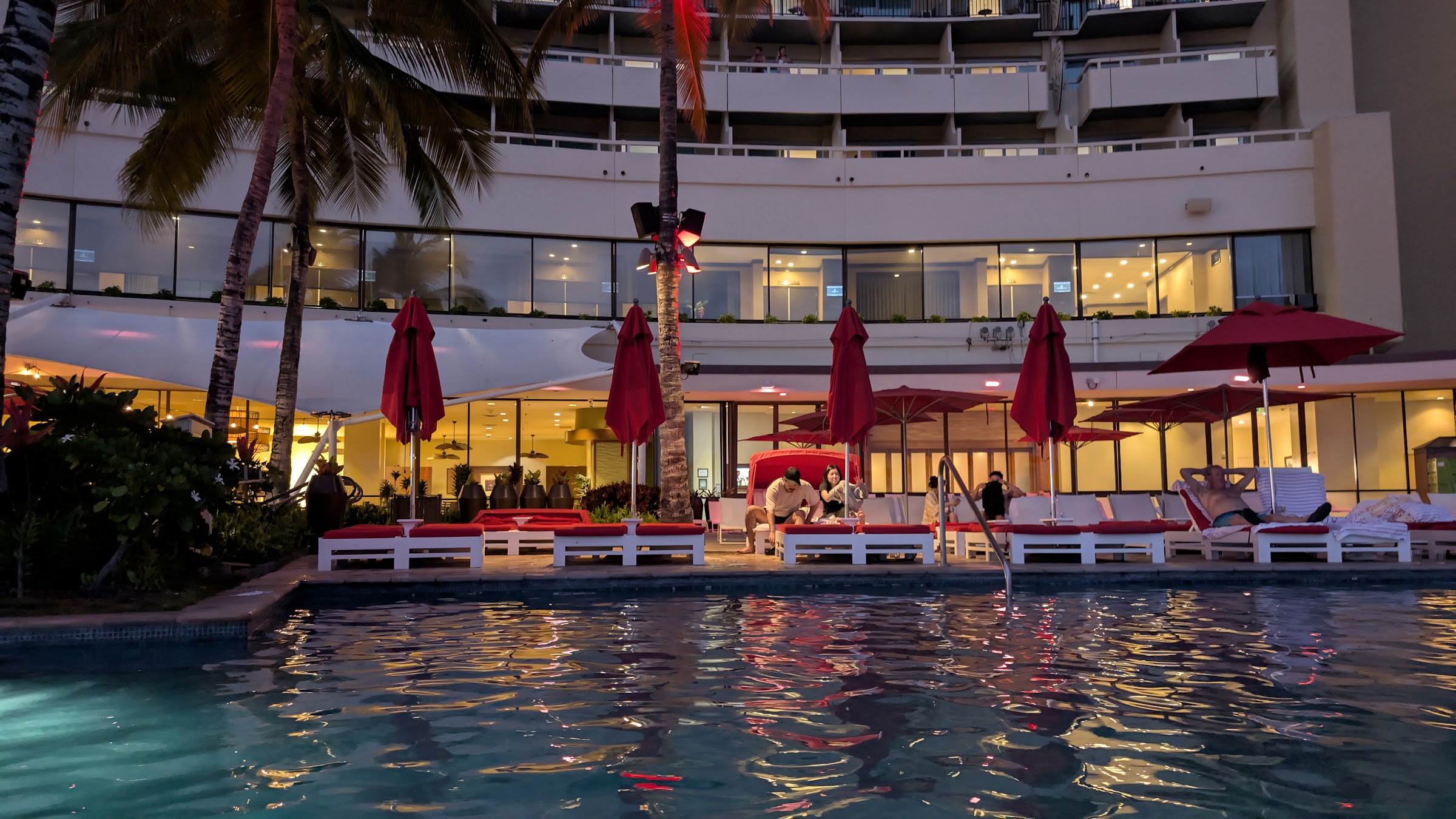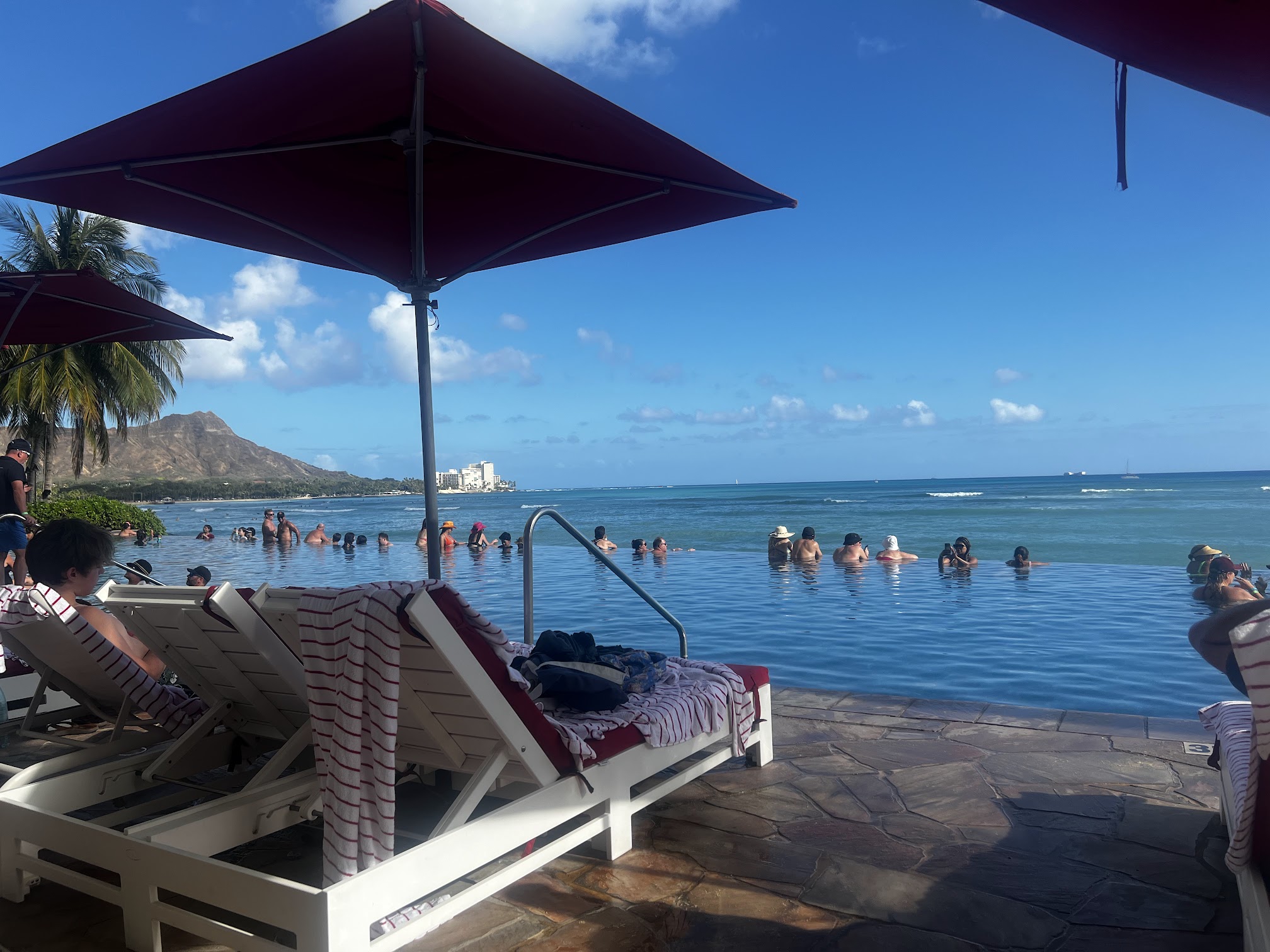Great infinity pool for the ocean view! Come here at 5-6PM for the outstanding sunset moment. It was an experience I could never forget. The scenery was just beautiful. Lots of chairs and towels to borrow for guests. Easy to access and there were many available spots to leave stuff too, no need to reserve (I go during May). Overall a wonderful time spent here, totally recommended for everyone!