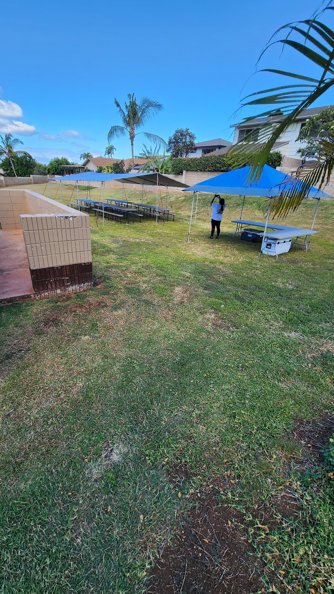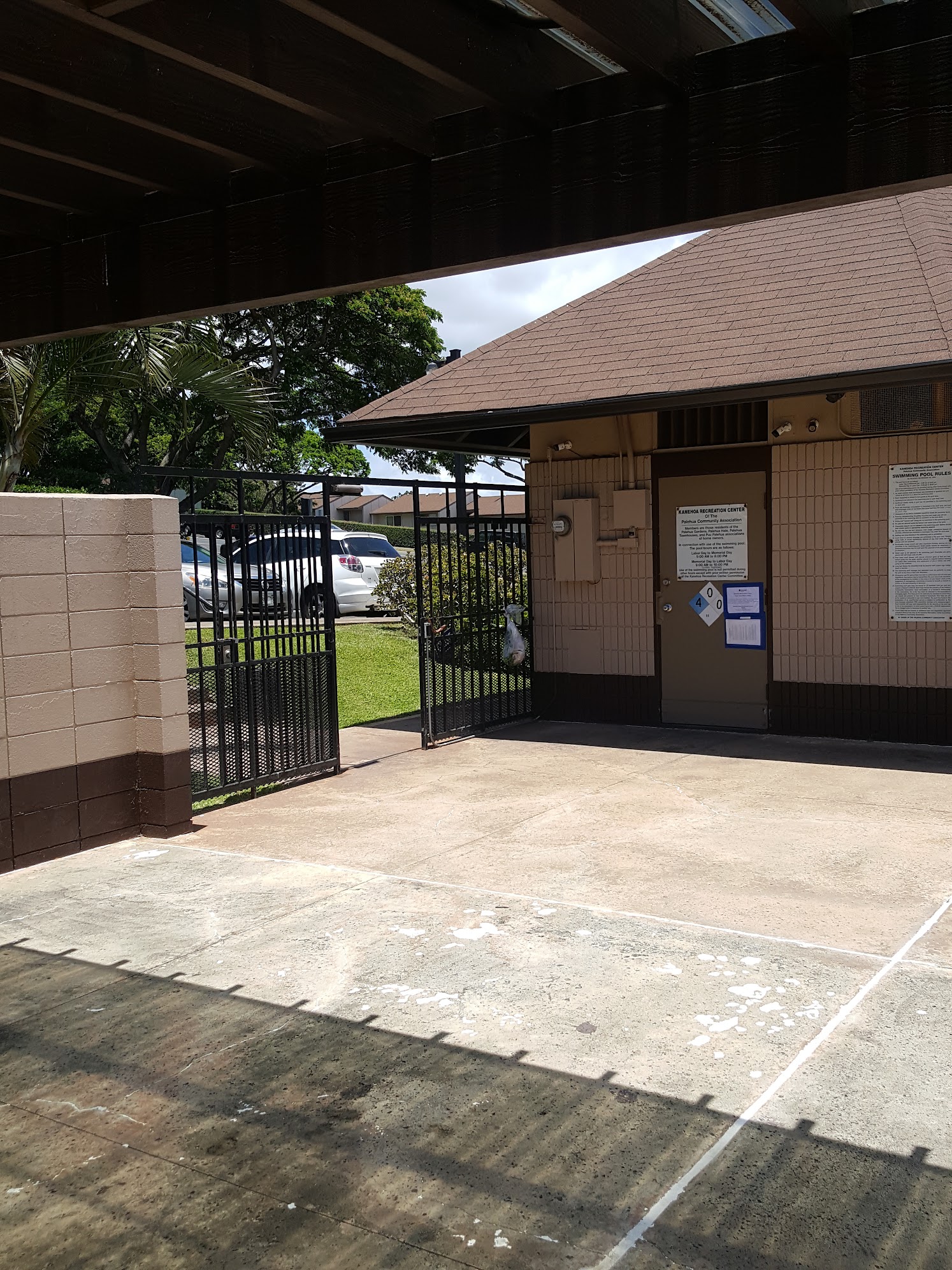 Lovely little pool! Nothing fancy about this pool, just a solid pool that gets the job done and done well. Pool is backwards "L" shaped. There are steps on one end that lead you into the three foot area. The three foot area heads out into the four foot area at the elbow in the "L" which turna into five then six foot areas. Two small ladders built into opposite walls are in the six foot area for egress. There two changing rooms, one male and one female, each has a couple toilets too. There are three outdoor showers for use also. A pergola with covering roof is available along with a small number of full length beach chairs. No glass is allowed at the pool but you can bring food and plastic bottles as desired. The usual no running, diving and horseplay apply here. Residents must sign in, follow the rules and keep guests to a minimum. The pool is also for rent for residents who desire to do so. Renting information is located between the bathrooms/changing rooms. There are NO LIFEGUARDS at any time, you must swim at your own risk. Lastly, being 1.5 miles up the hill from the H1 there are great views of Honolulu, Diamond Head, the mountains, Ewa, Barber's Point, the ocean in general and more. Do be careful turning into and out of the parking lot onto Makakilo Dr. The entrance is located on a mostly blind curve and there are semi-serious accidents here often as people coming down the hill are going fast and cannot see around the corner. Lastly, the pool is NOT a public pool. You must be a resident of one of the four HOAs that pay dues in order to use the pool unless a due paying resident accompanies you.