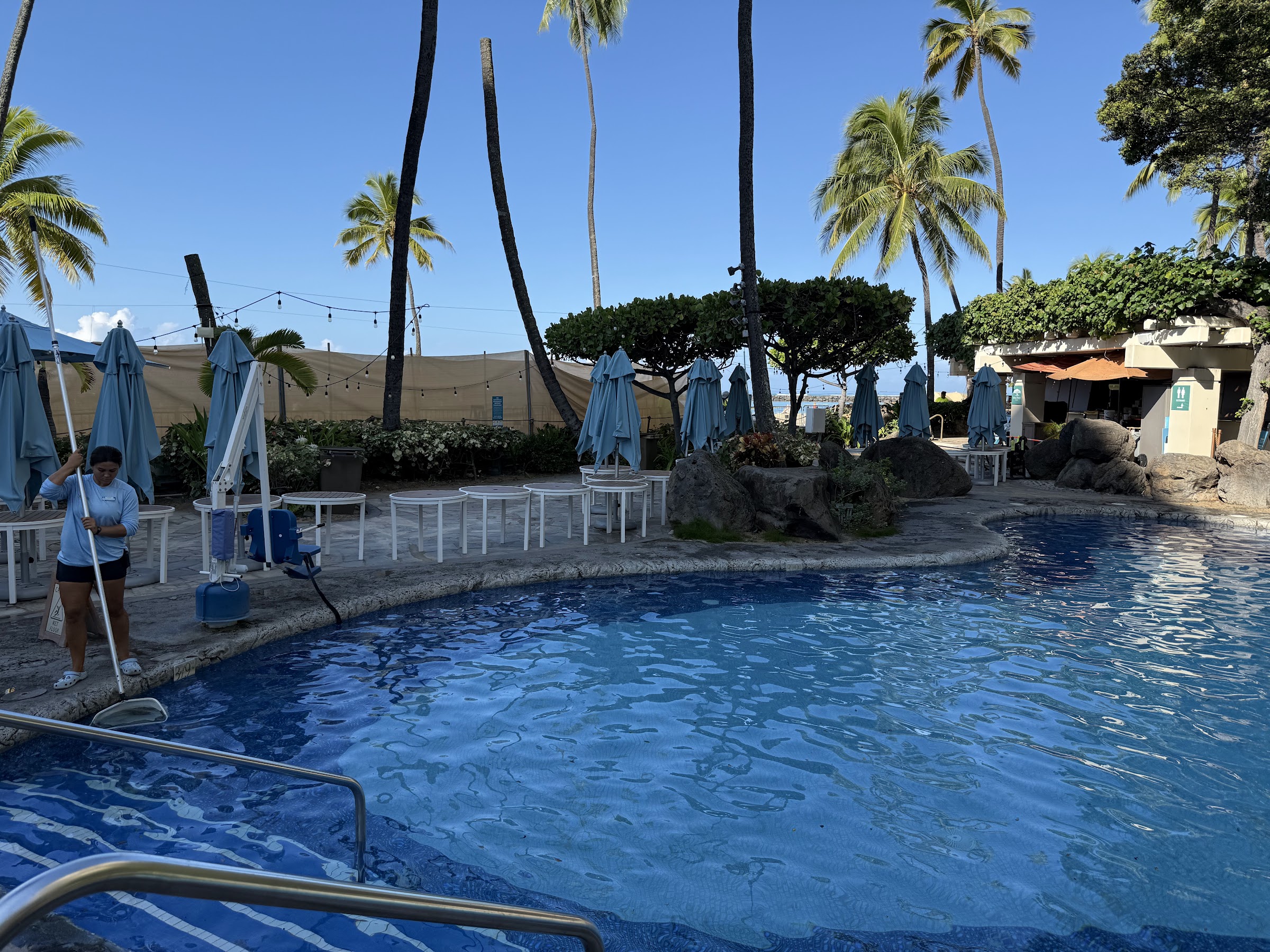 There is nothing super about this pool. That said, it's a nice pool and we spent most of our time in this pool (the lower and upper portions) especially because it's open until 9pm and it's near the better part of the beach (less rocky) and nearer the Wiki Wiki Market and other amenities.