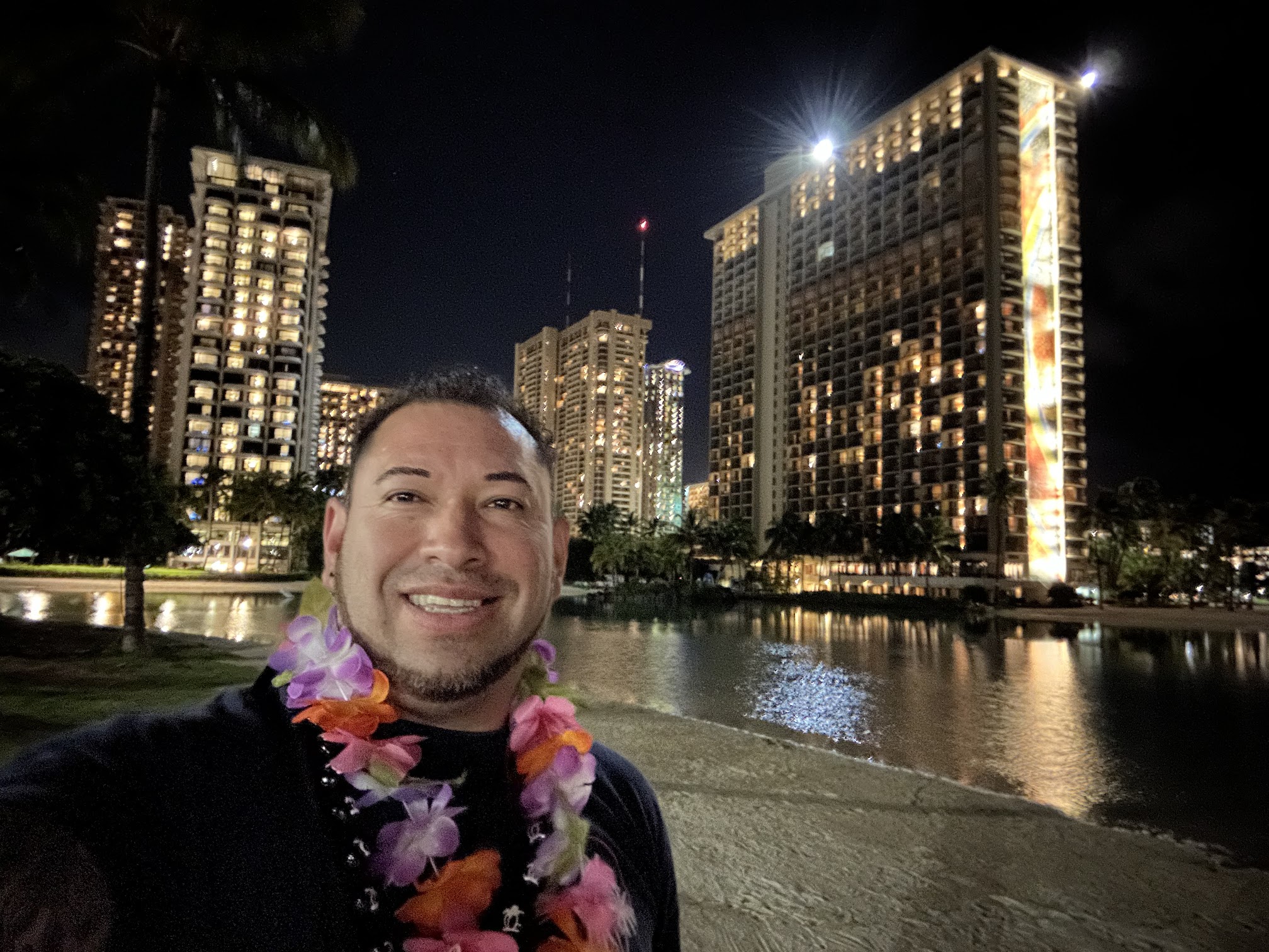 What are people saying (AI review summary)? The pool is generally well-received, often described as bright, spacious, and amazing, though some found it not 'super' or smaller than anticipated. It's appreciated for its shade, late hours (until 9 pm), and excellent location near a less rocky beach section and amenities like the Wiki Wiki Market. The nighttime ambiance is also a highlight, contributing to an overall positive sentiment for the pool and the Hilton experience.