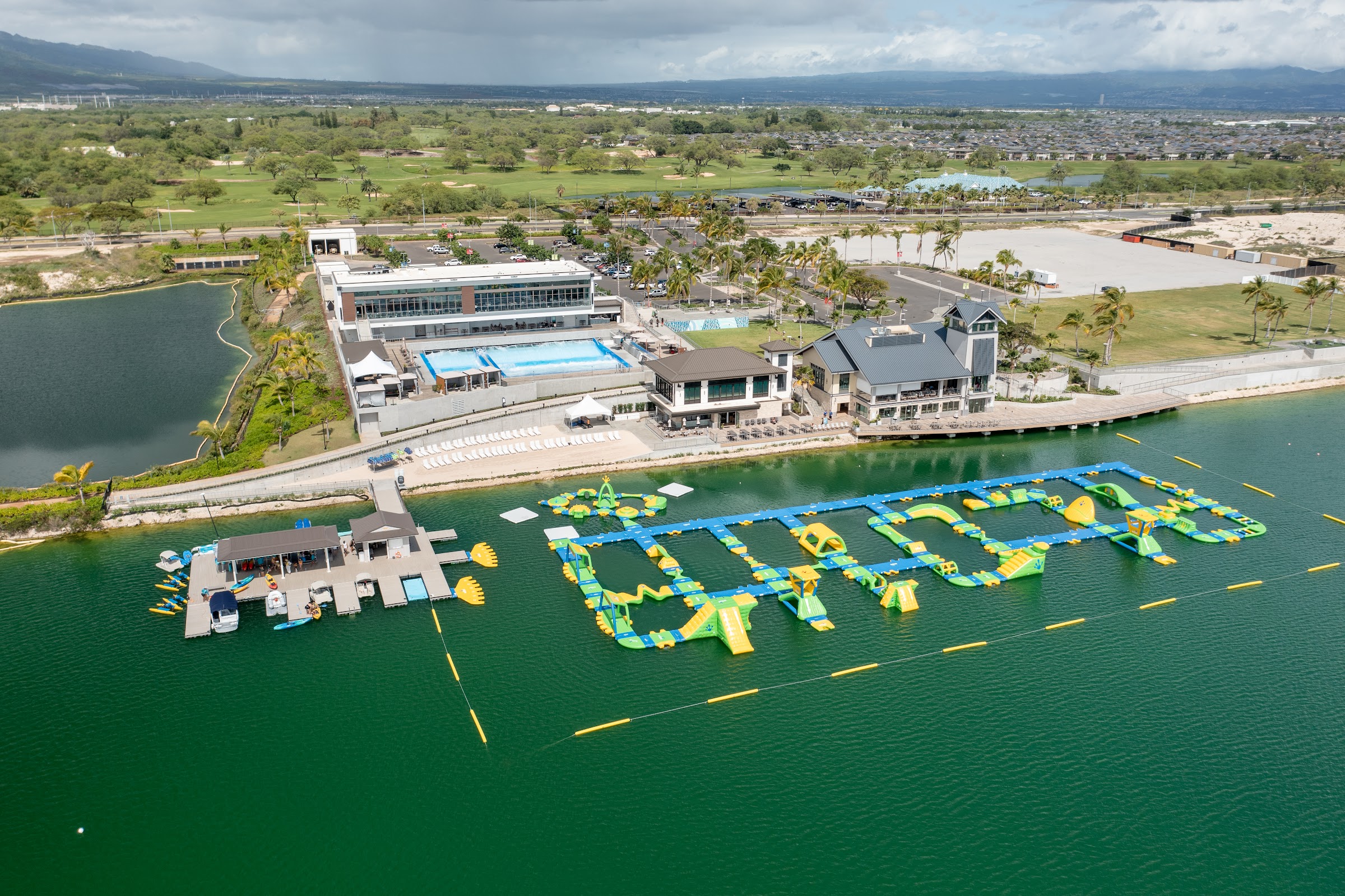 Sprawling, clean facility that offers surfing, restaurants and a floating obstacle course.