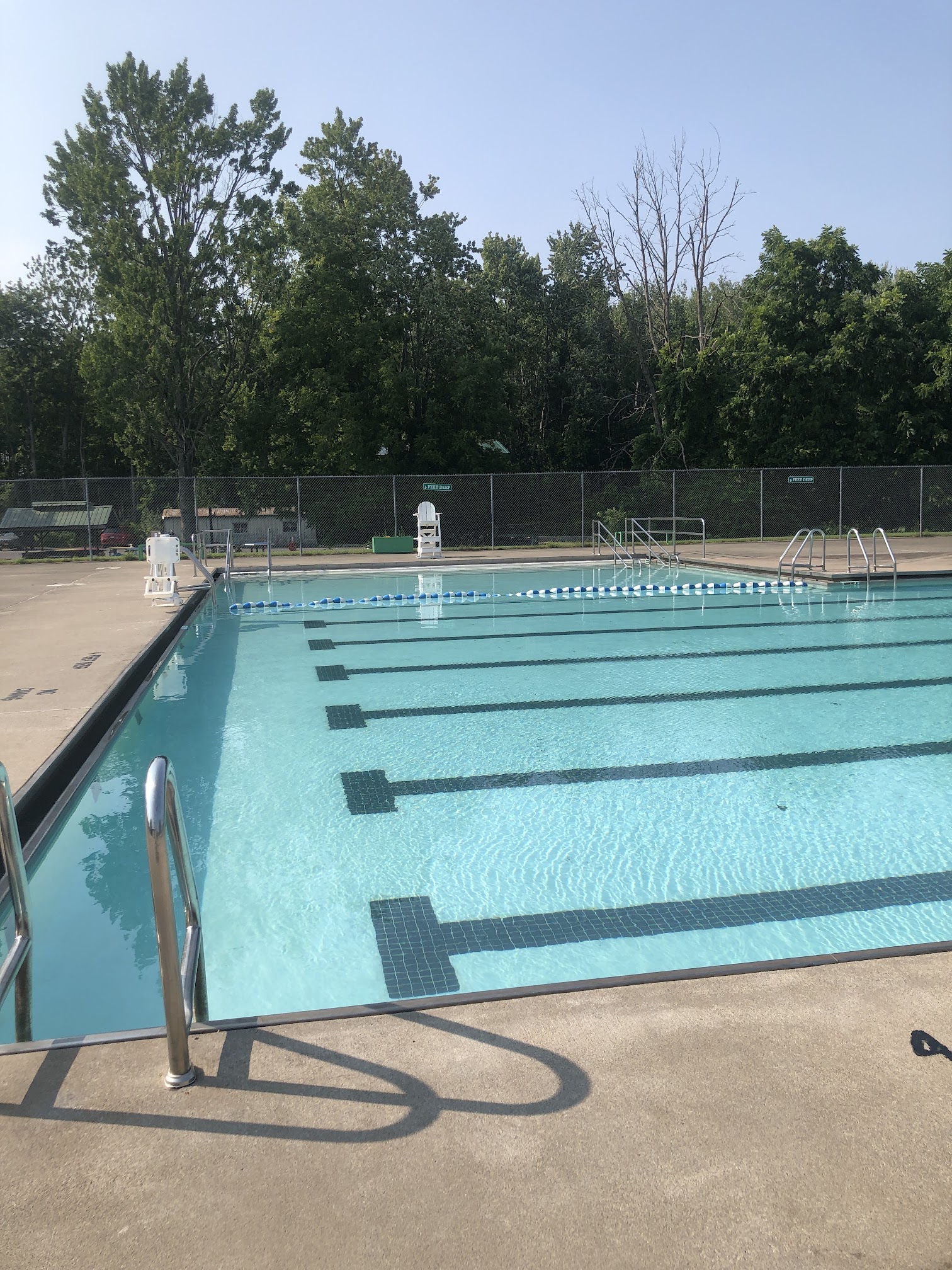 What are people saying (AI review summary)? This pool is highly praised for its family-friendly environment, featuring multiple depth sections (3ft, 5ft, 13ft) and two diving boards. Visitors consistently highlight the excellent, watchful lifeguards and effective swimming lessons. Amenities include a shaded section or covered shelter with tables, various seating options, clean bathrooms, and changing rooms. Some reviews also mention additional recreational facilities such as a playground, basketball court, tennis court, and ball fields. It is described as a clean, comfortable, and safe place, ideal for keeping kids busy, hosting birthday parties, and general family swimming.