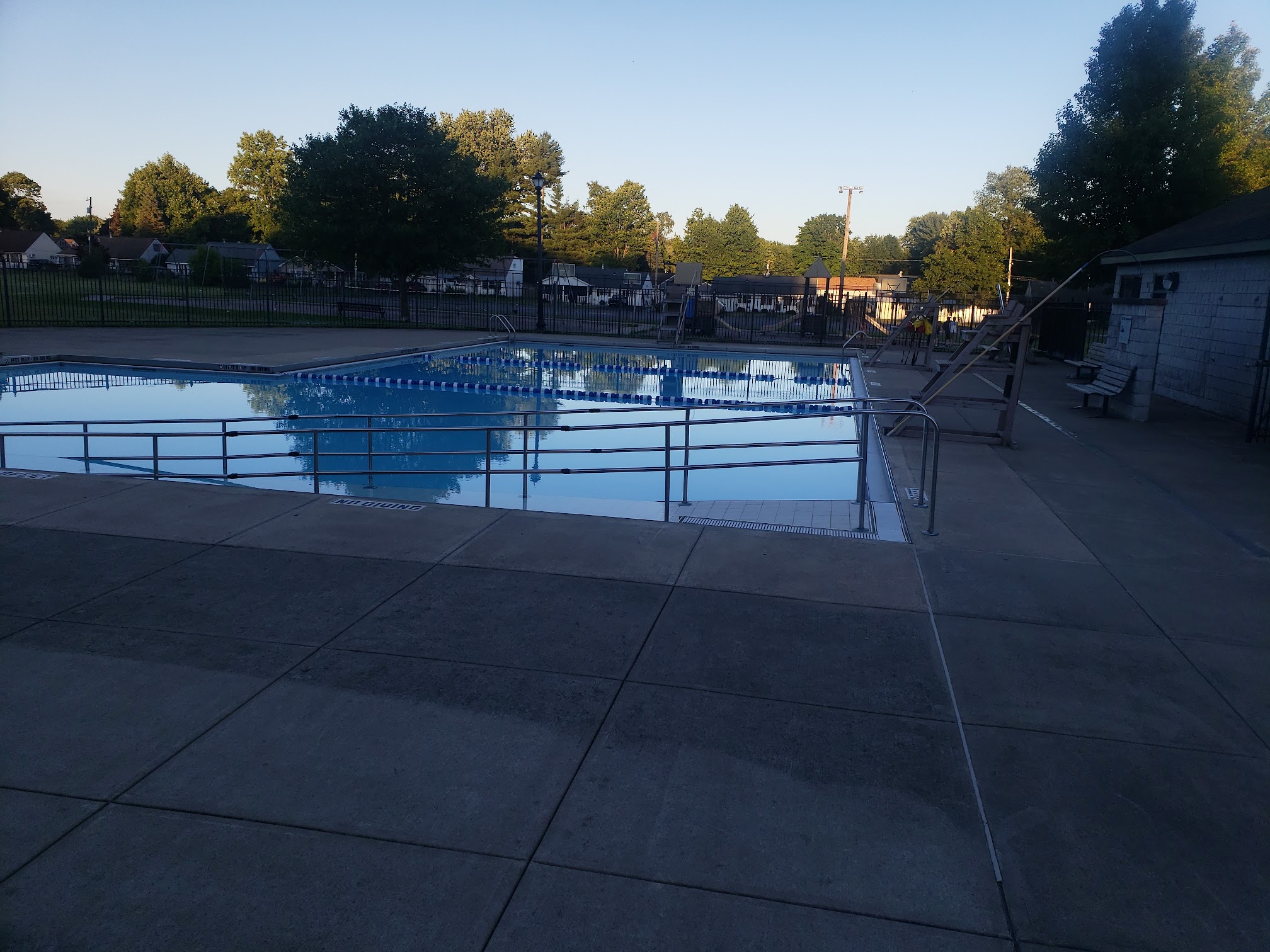 What are people saying (AI review summary)? Reviews indicate a mix of positive and negative experiences. The pool is generally free, family-friendly, and located next to a playground, typically open until around 4:45 pm. However, it often gets overcrowded, lacks stationary seating, is all concrete, and needs handicap access at both ends. Visitors are advised to bring their own chairs and eat beforehand due to limited dining options. The park area is considered nice but has concerns about inconsistent opening hours (some facilities don't open until 1 pm) and a significant lack of adequate picnic tables and shaded resting places, making it feel unwelcoming despite its potential.