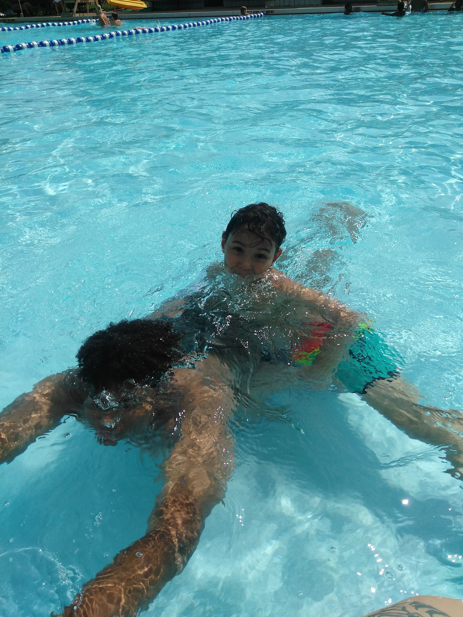This pool gets overcrowded at times. It is all concrete and there isn't stationary places to sit. Feed the kiddos beforehand. Easy dining isn't this area. If you wanna sit down bring your own chairs.