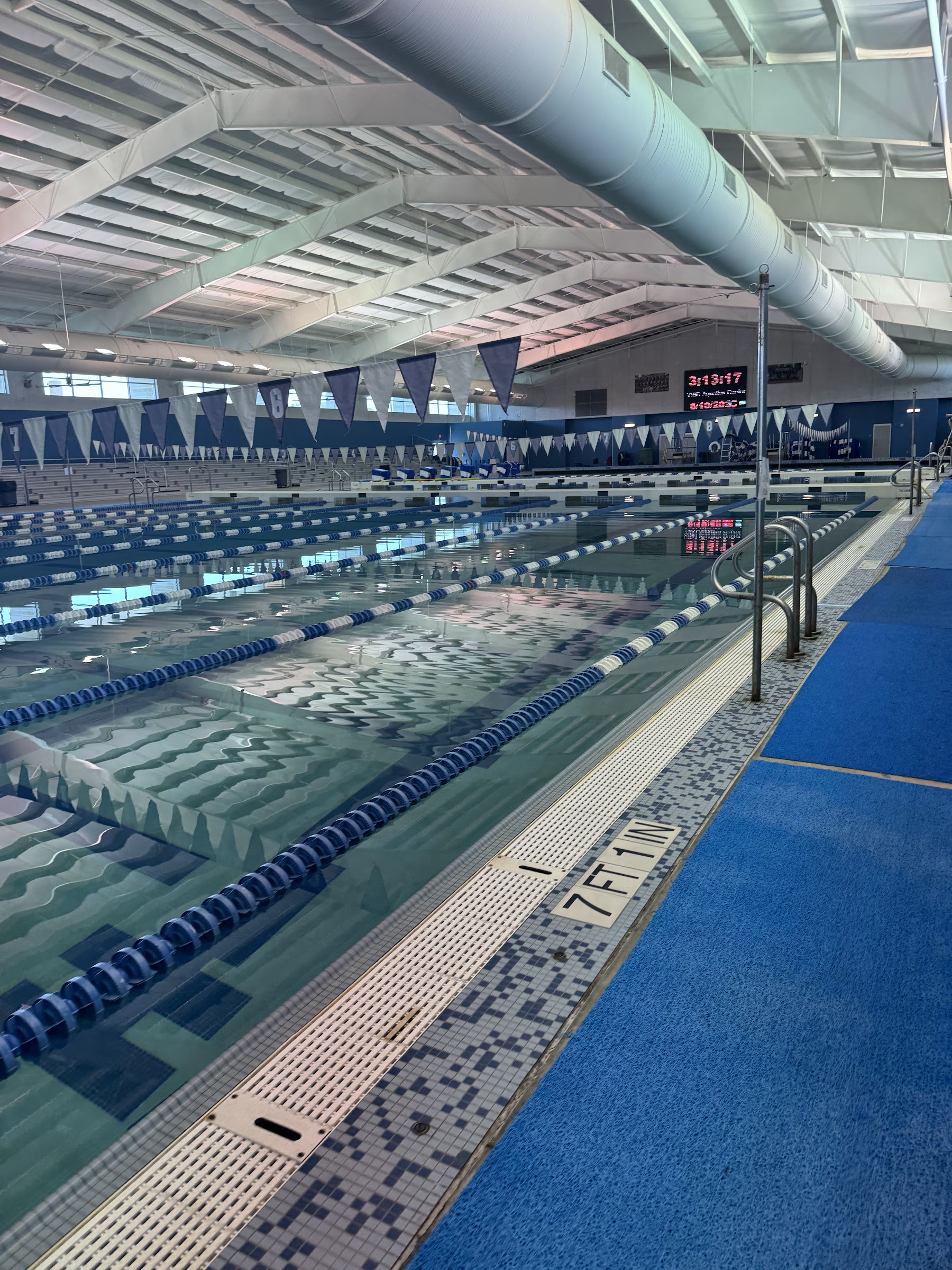 The worst aquatic center for meets I have ever been to. No places to sit, everyone is coughing around not wearing masks. True Covid heaven. No parking fir so many people whatsoever, you can't leave your spot so you can take lunch break or you will loose it. But food wise they are not allowing outside food so they can sell their stuff with zero healthy options for athletes, a bunch of candy, pizza and Chick file deep fried sandwiches. Horrible, absolutely horrible place. Never again. If you bring something they will call security on you 😅 Minus 5 stars