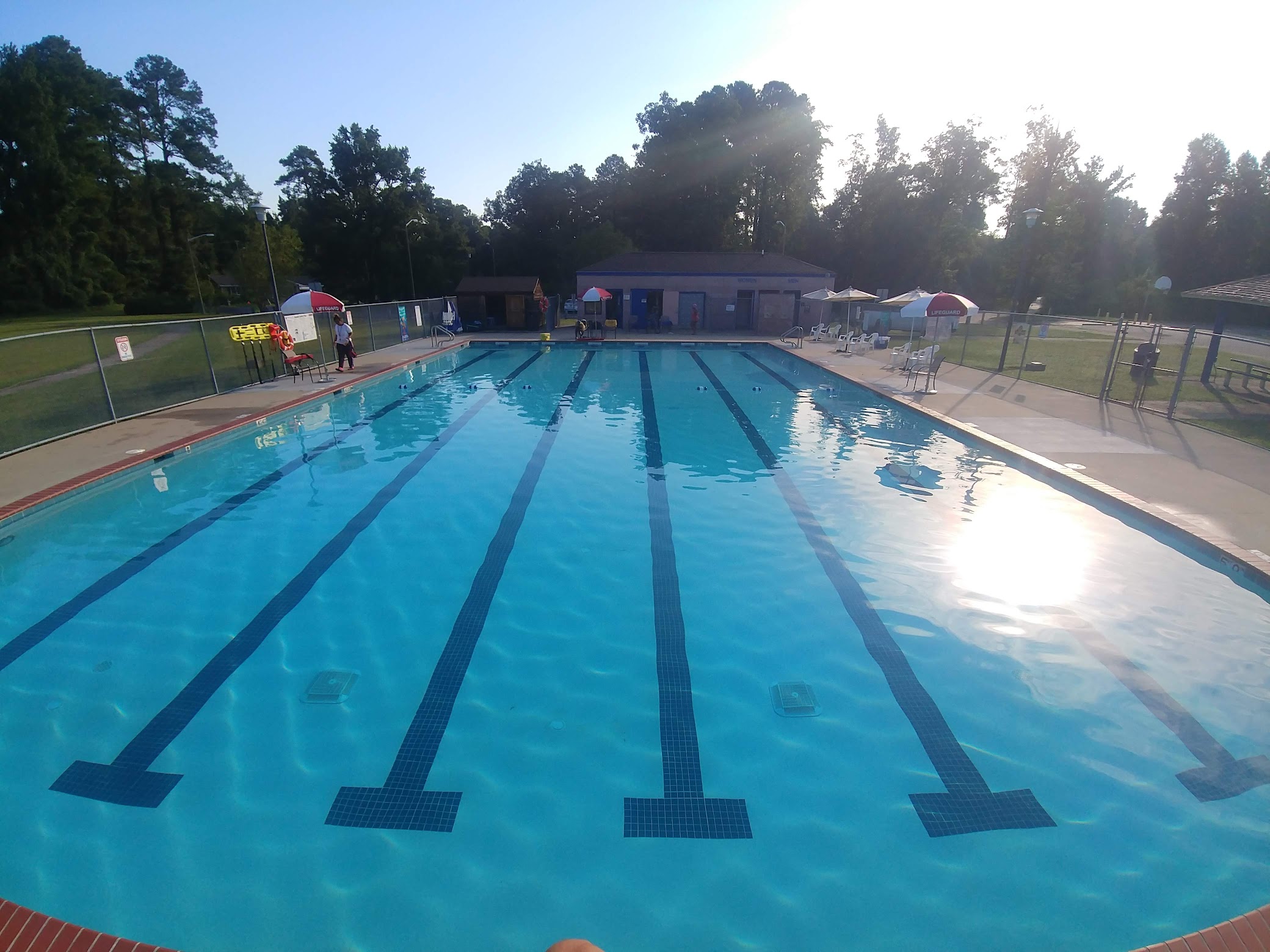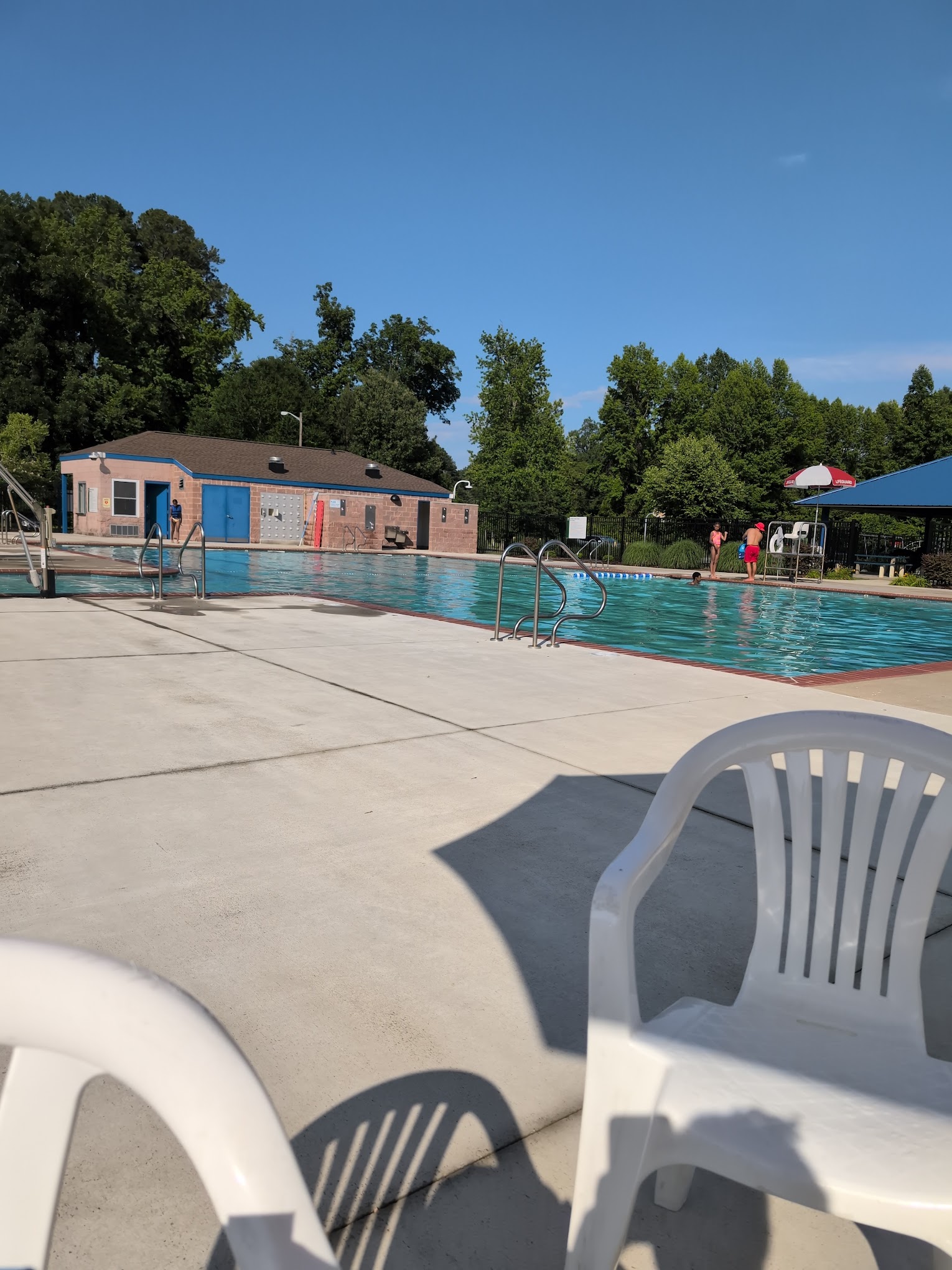 What are people saying (AI review summary)? The park is generally clean and offers pools suitable for kids and families, opening around Memorial Day with a kiddie wading pool, though it's not free. However, significant drawbacks include broken playground equipment, a lack of baby/kid swings, fenced-in walking trails, and the absence of daytime bathroom access and a park attendant.