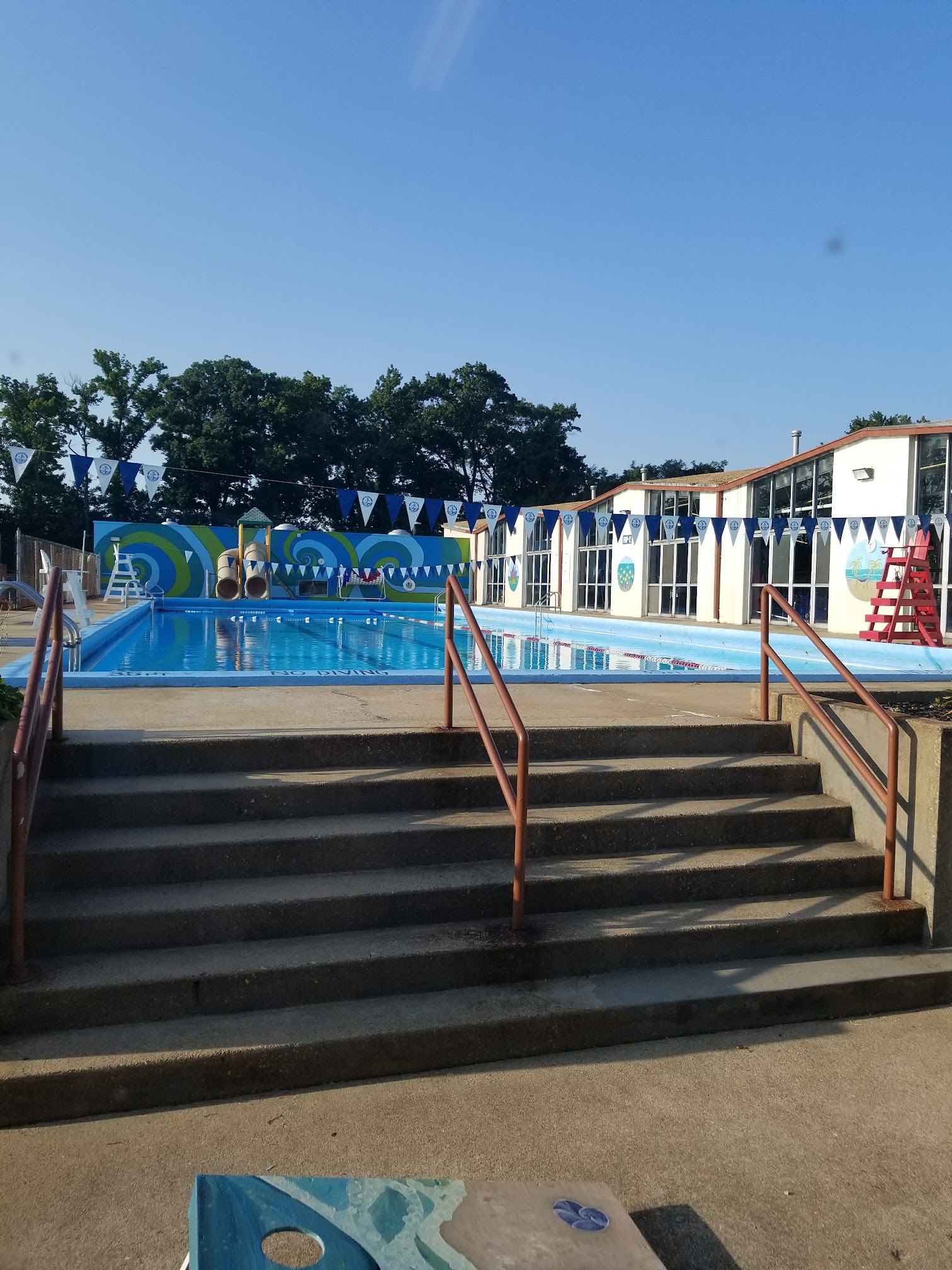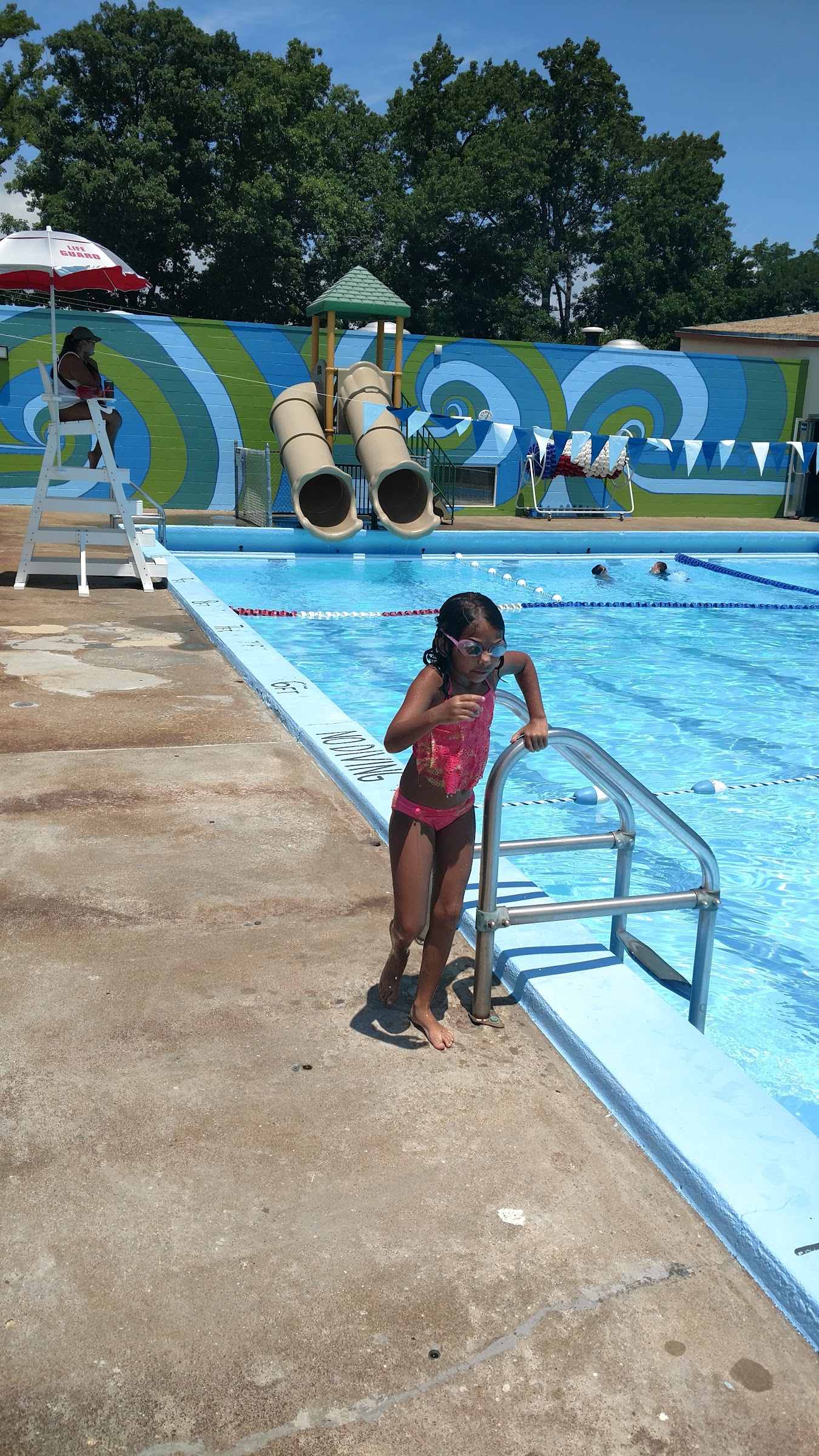 Public pool offering a 50-meter lap pool and hot showers.