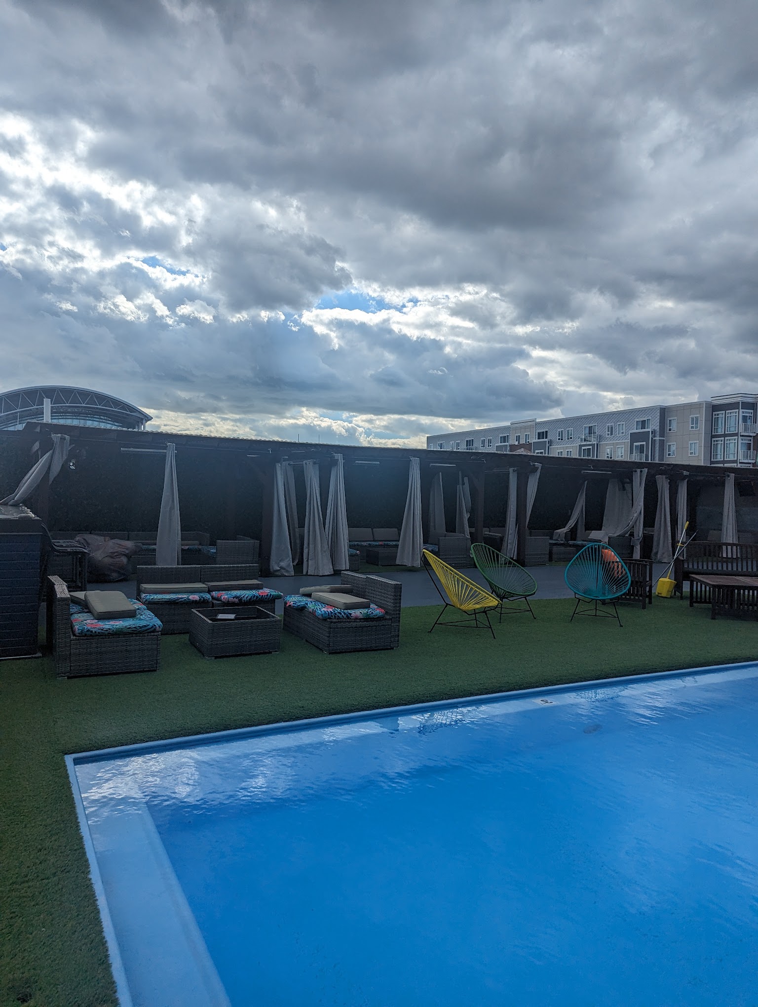 Ths establishment truly nailed the assignment. Outstanding grown-folk chill vibe experience. The music (live local bands) are unmatched, rooftop lounge/poolside view = aesthetically pleasing, the food (especially sweet chili wings)=fresh & flavorful, the happy hour drink specials were on point, and the service & overall energy was just dope. Definitely a win for the grown & classy culture. This spot is a much needed venue for this area. The perfect unwind-after-work ambiance for adult professionals looking for fun, food, relaxation, style & entertainment . Can’t wait to return!