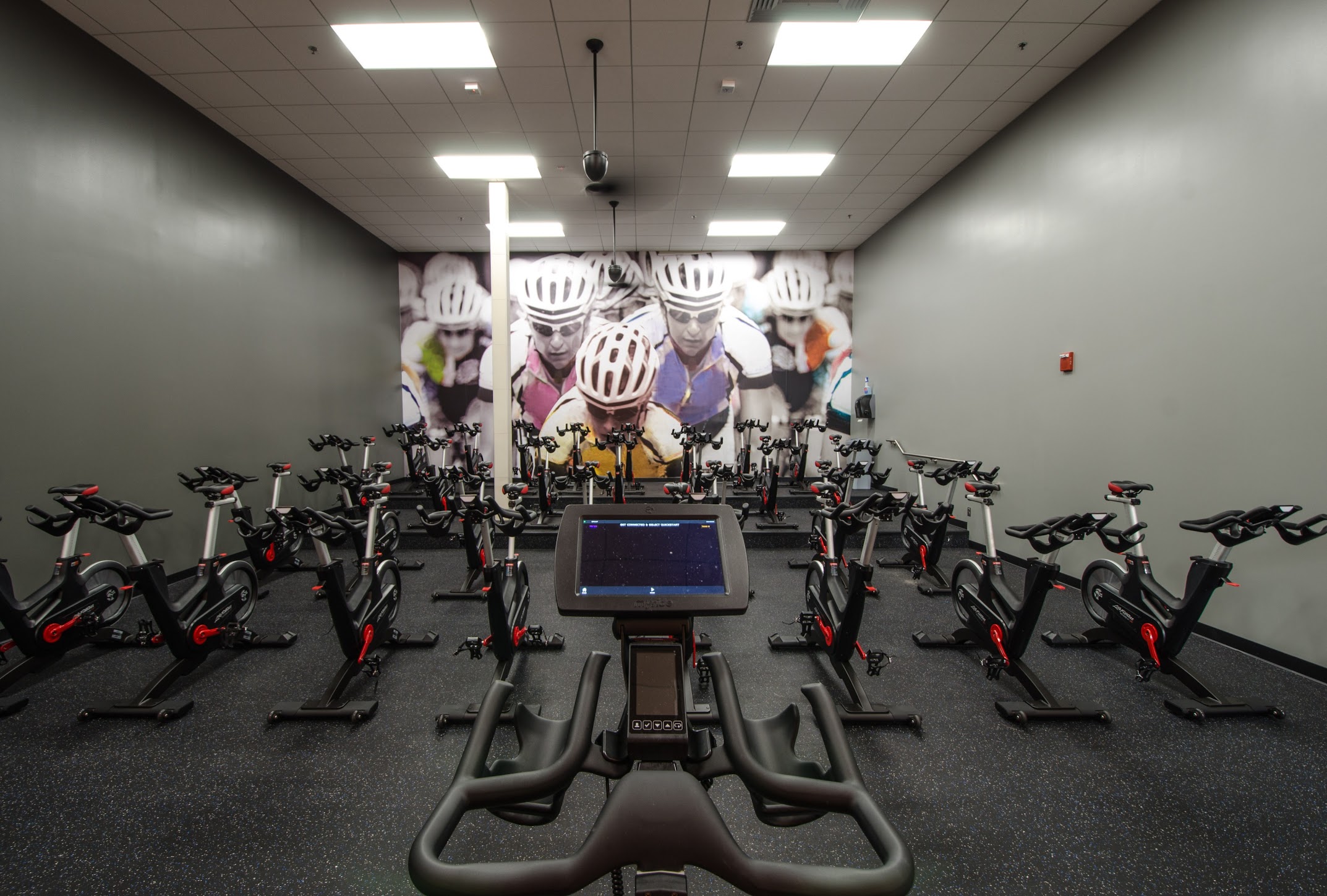 Spacious, clean gym, fitness class and Pilates-studio featuring a pool and an indoor water park, with personal training options.