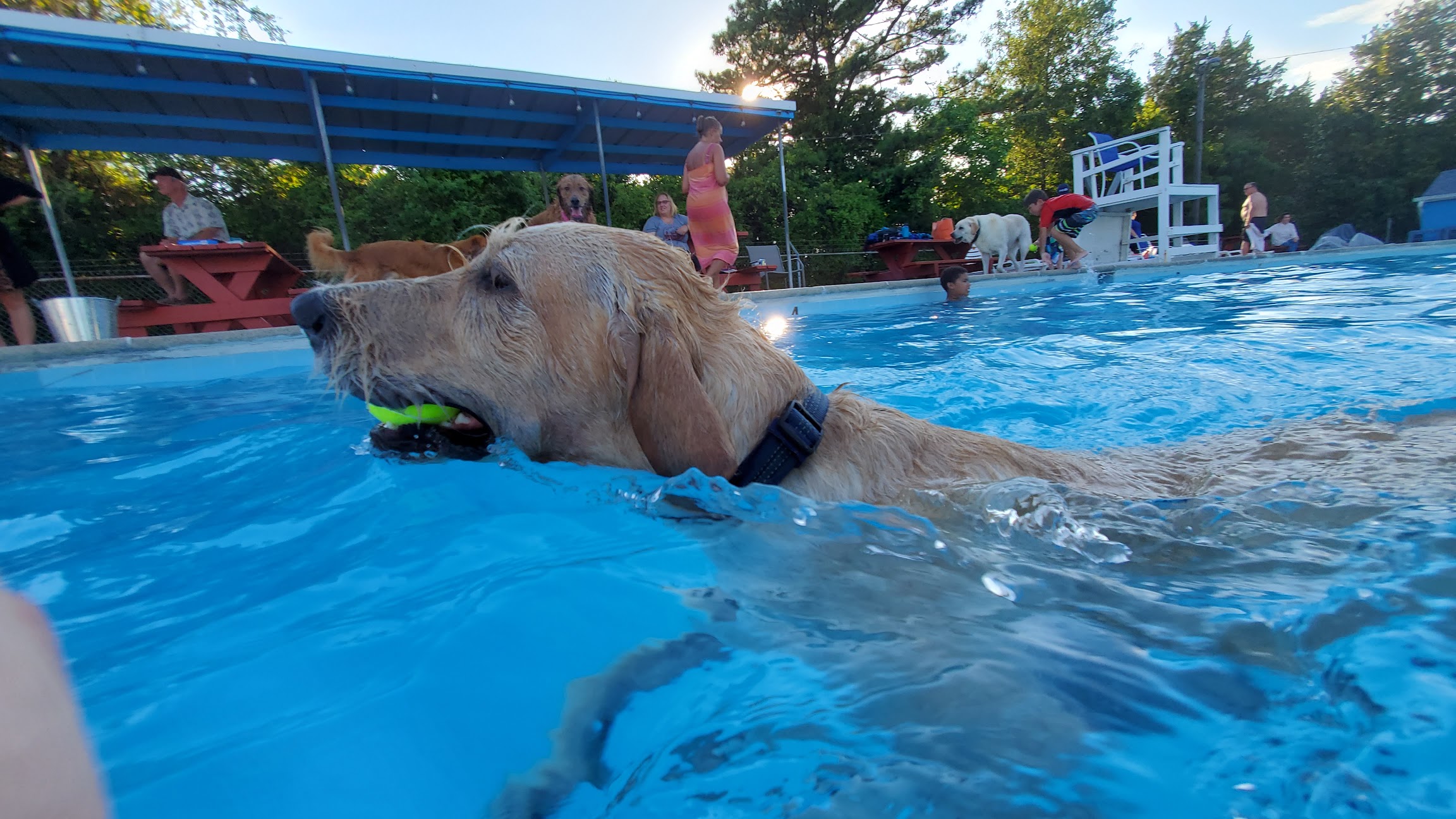 Every 2 weeks this summer (2020) they held a doggie swim and we went for several. The staff and people attending were relaxed and friendly, the dogs loved it, and I enjoyed both swimming and getting some great photos of the pups having fun. The pool and grounds were clean and comfortable. We will definitely return!