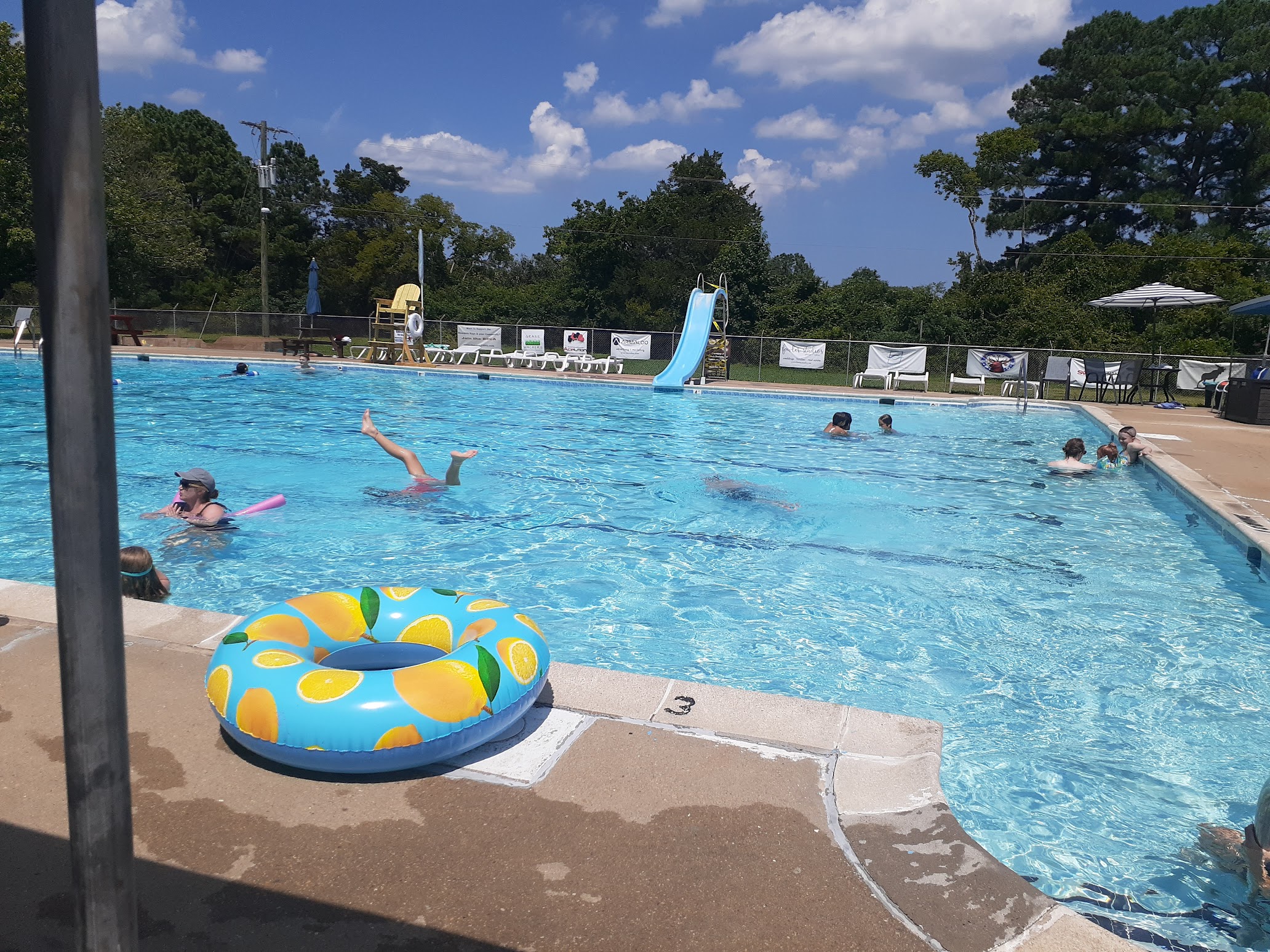 What are people saying (AI review summary)? The pool generally receives very positive feedback, with many users praising the clean facilities, friendly and welcoming staff, and family-friendly atmosphere, including a kiddie pool and snacks. Many patrons have been long-time members, some even moving to be closer to the pool, highlighting its appeal for families and events like doggie swims. However, a significant drawback noted by one reviewer is the high cost of seasonal and day passes, which are considered astronomical and pricey given the limited amenities (one small slide and a low diving board).