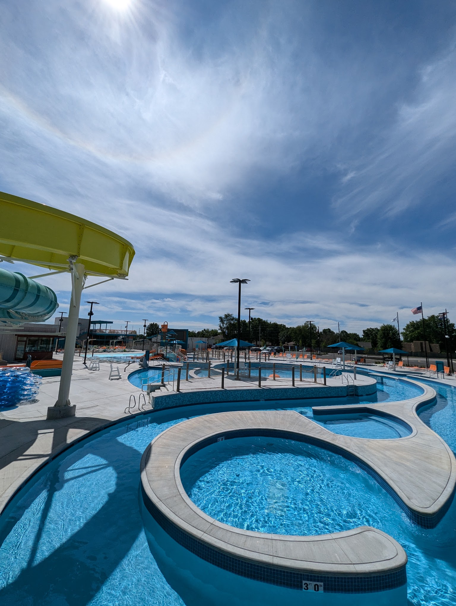 The slides were cool! Most of the lifeguards were nice except one who acted as if he was on a power trip the whole day. I understand the new rule they’re trying to enforce however they’re going about it wrong….children 5 and under have to be within arms length of a parent. Now this means if a parent is sitting in the same play area watching their kids but not within literal arm distance the lifeguard will blow a whistle and tell them to go to their parent. I waved, went over to the guard explaining I was right there watching them and not in a different area of the park. My 3 almost 4 year old who was wearing her life jacket and playing with her older sister in a 2ft kid play area she could touch in kept getting told to go by their parent and this lifeguard was rude. I’m not holding my children while they’re swimming; we went to play and swim. I’m not dropping them off to be babysat as I’m doing my job as a parent watching my children and staying close to them. But I don’t need to be holding their hand the entire time they are swimming or breathing down their back. I could hear and see everything that was being said and they were doing. I would have been able to get to them faster than the guard. Never had this rule at any pool or facility I’ve been to. The rule should be changed to 7 years old and younger need to have a parent in the same play area.