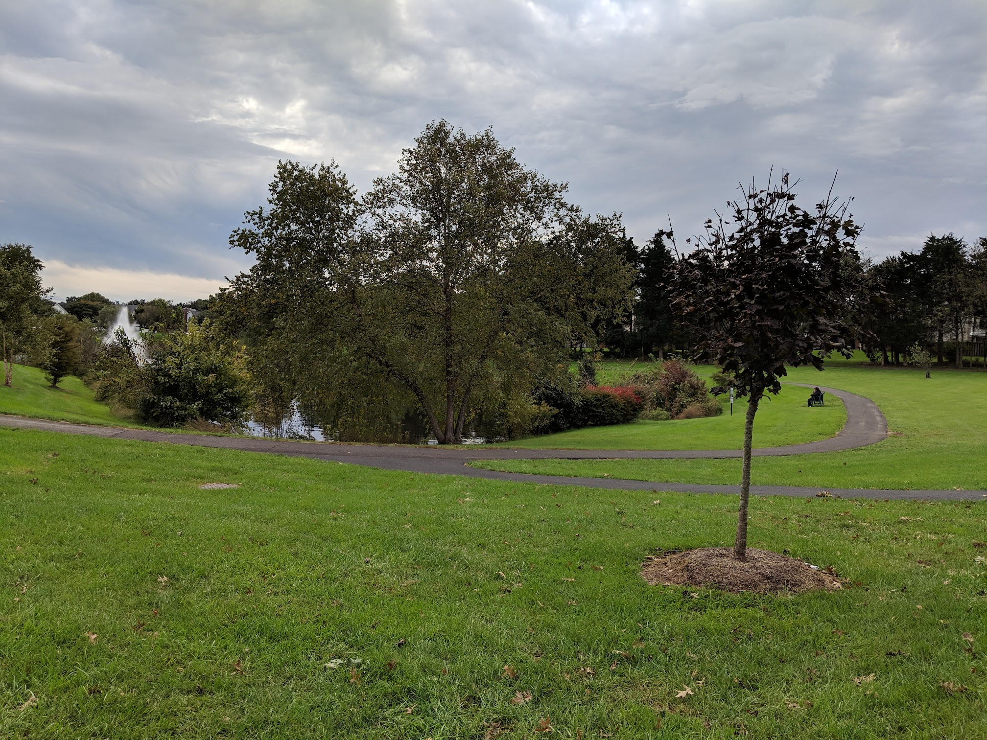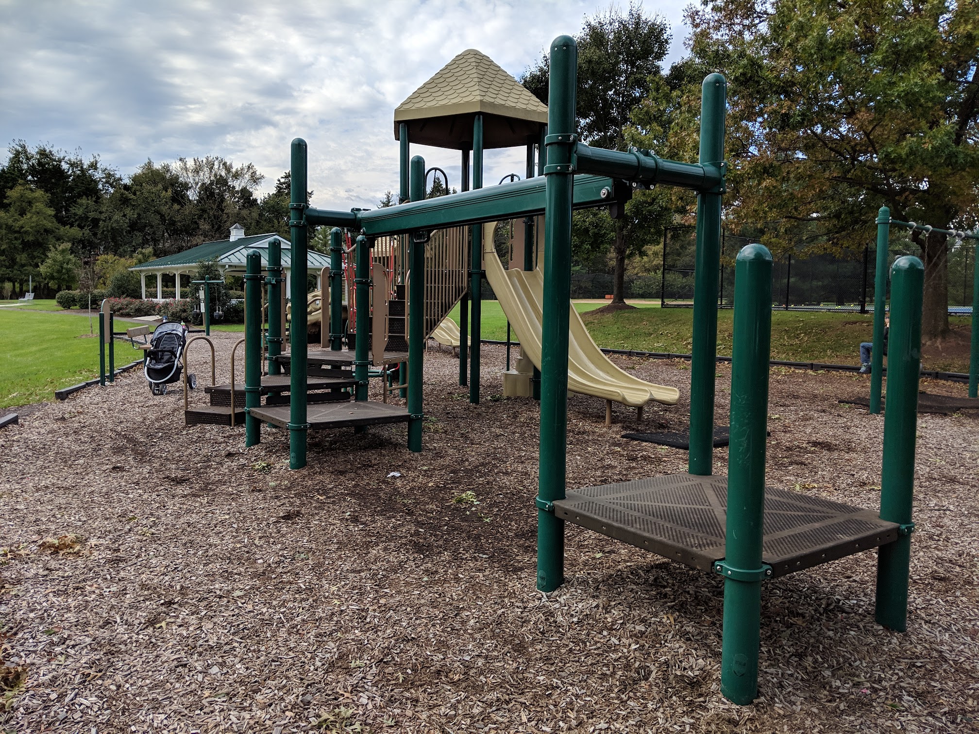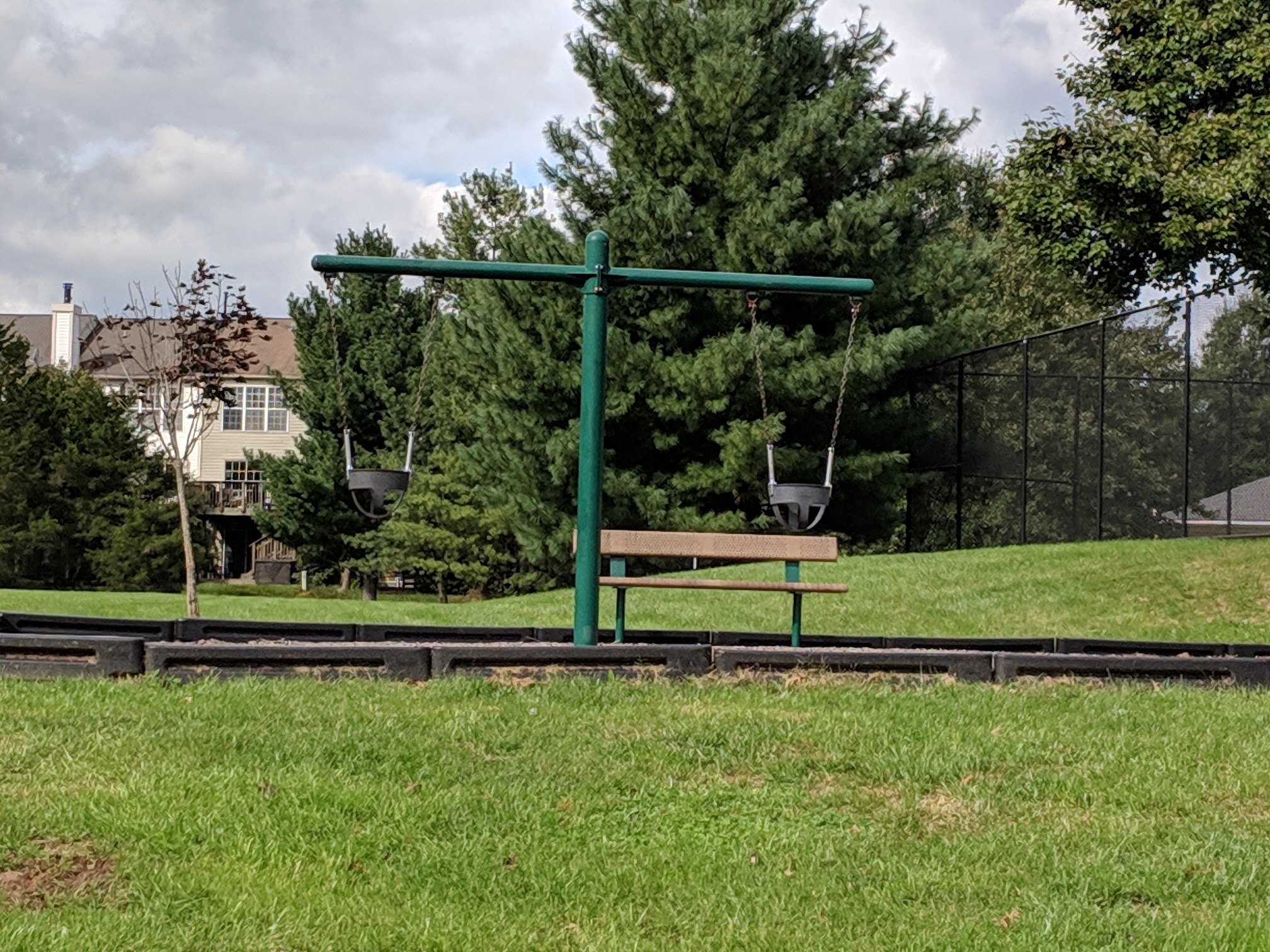 It's a small park with a couple of climbers and some swings for little and big kids alike. There's a nice walking path around a small pond with some benches for sitting f which is nice. A baseball field in the back and lighted tennis courts (3-4) which are busy on the weekends. Just know it's supposed to be for residents only (though there's no one there checking IDs, just be aware of it).
