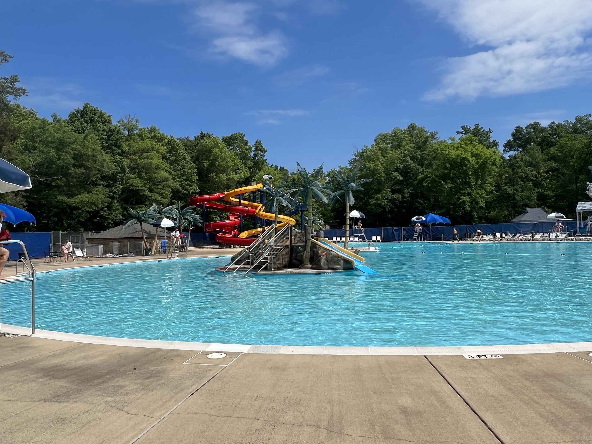 The main pool was large and warm. There are two large slides and two splash pads. We were expecting more but it worked for the needs of our family. The outdoor seating and lockers need to be updated.