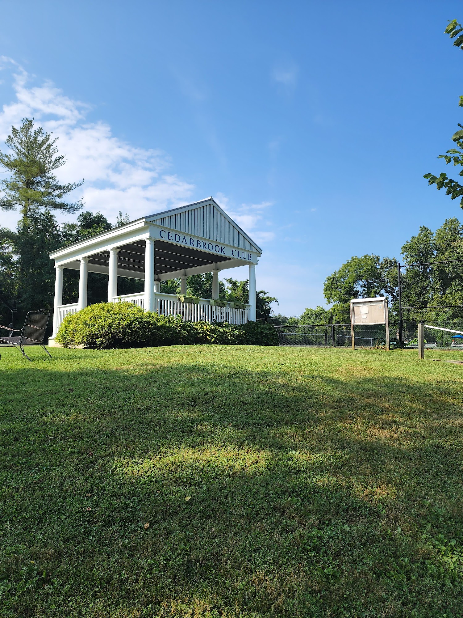 Cedarbrook Swim and Tennis Club, located at 10150 Cedar Ln, Kensington, MD, is a member-owned recreational facility. It features a large 25-meter main pool with a diving well, a separate baby pool, six tennis courts (also used for pickleball), a basketball hoop, a playground, a clubhouse, and a snack bar. The club hosts a competitive swim team and various social events for its members.