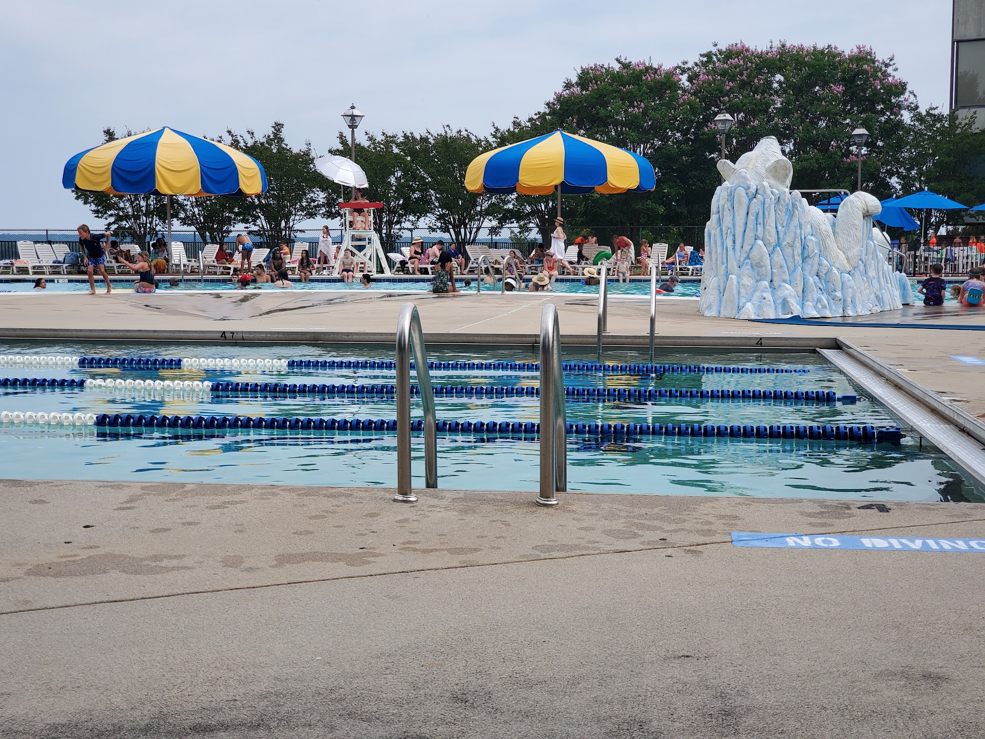 Being on a military base, expectations are low. It looks like a well maintained pool. Snack shop closed, limited hours and limited uncomfortable lounge chairs. On the day I arrived it was populated with families as expected. Plus is they have a great view of the Potomac river and a diving board which is rare to see these days. Must be military or guest of and Admission is $8.