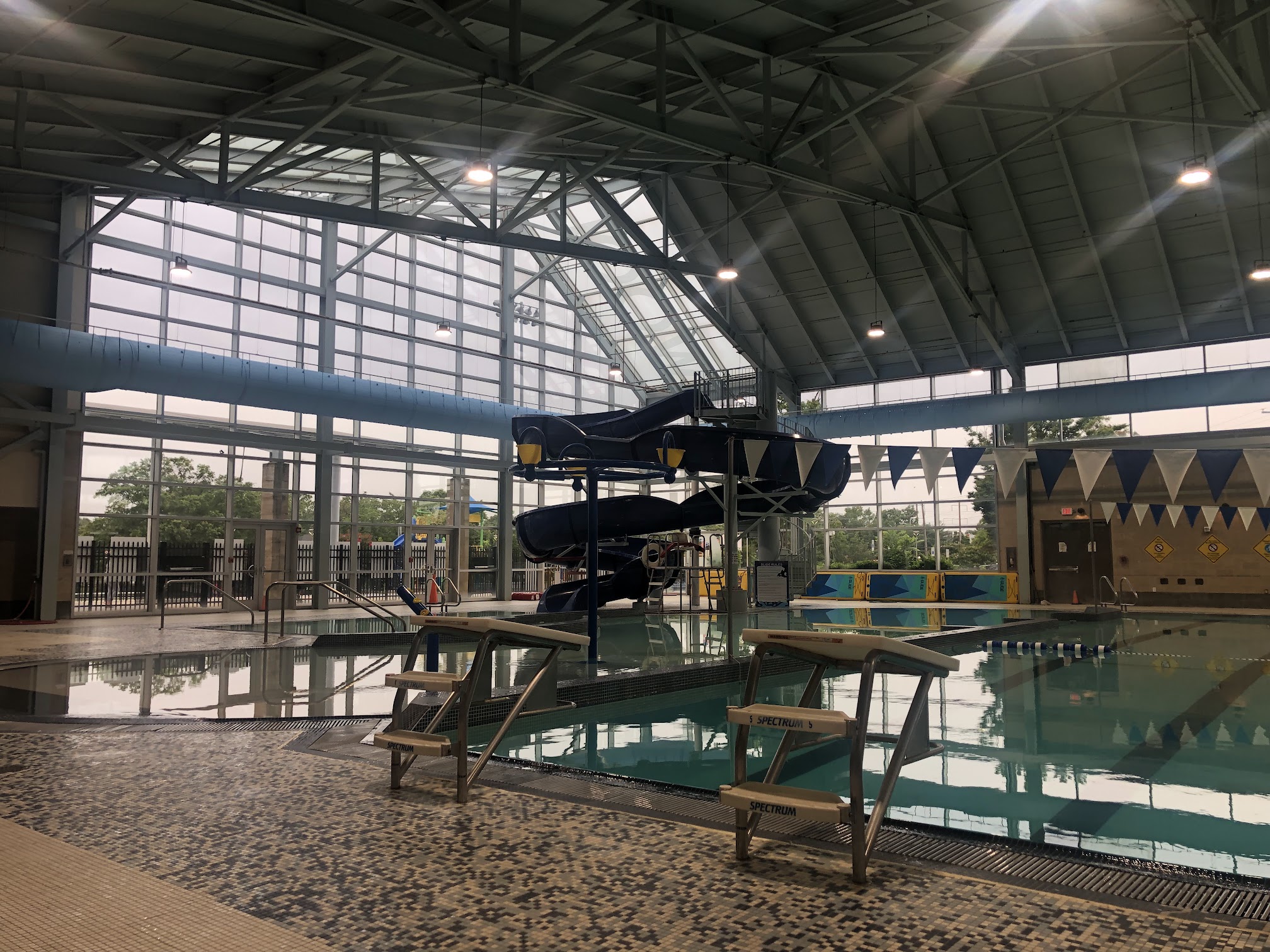 This place is amazing, but your experience there will likely depend if the lifeguard on duty. Online it says the slide is open from 1-4 so we came at 2 and the lifeguard on duty shut it down because they’re understaffed. The next lifeguard opened it up for a bit when we asked for it but also said they are understaffed and technically need more lifeguards on duty to have it open. The water is chilly at first but it’s warm inside so you adjust (nothing like Rumsey lol). There was an underwater spin class happening too - so cool! There’s also free life jackets, kick boards, and noodles! There’s a gradual entrance - perfect for toddlers (the splash features were off though). I love the huge windows letting the sunlight in. We will definitely be back! Would be 5 stars if they get it fully staffed so everyone can enjoy the slide!