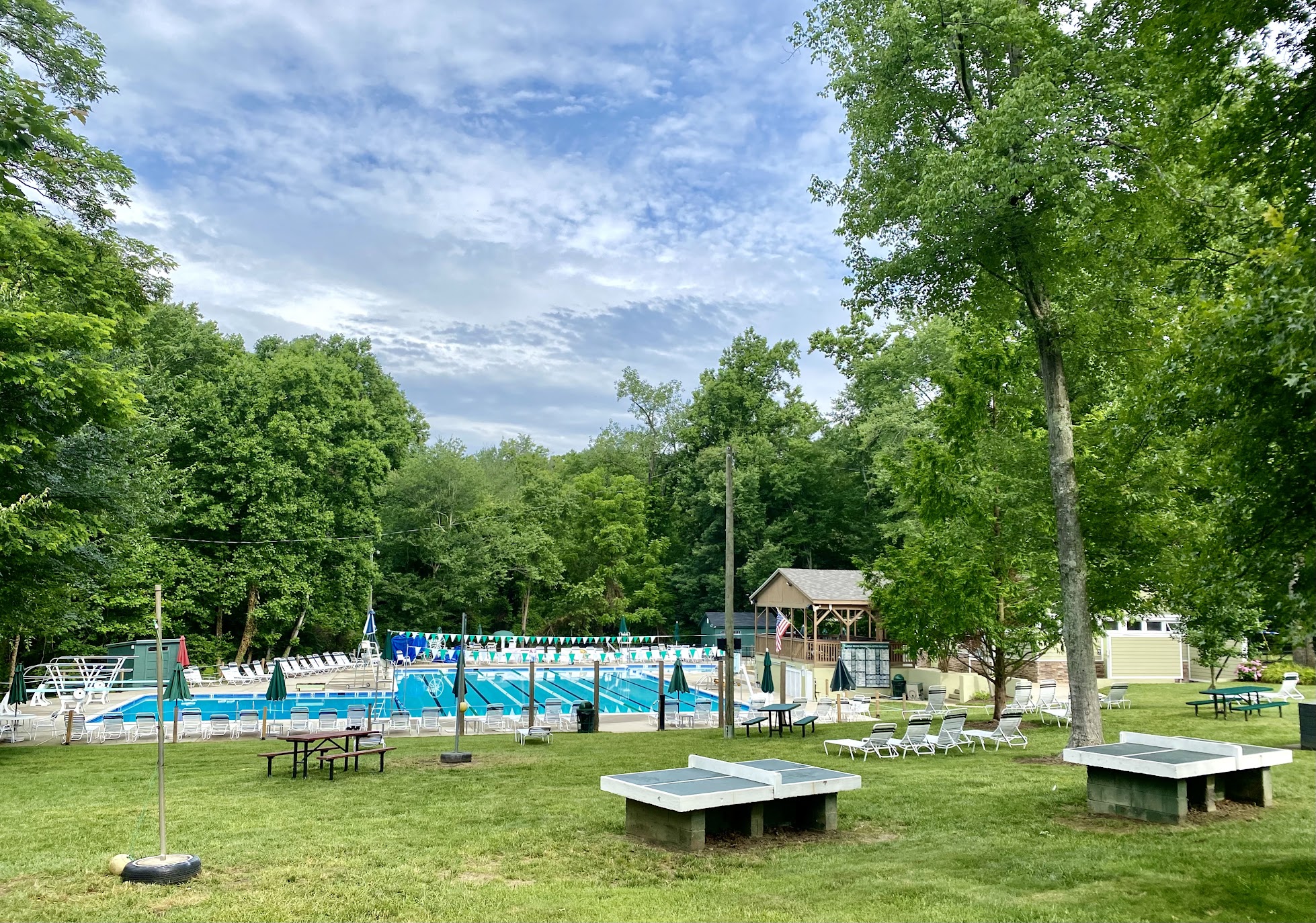 Great big pool with lots of space. Pool only gets really crowded on swim meet days and for the first couple of weeks of the summer when school is still in and swim team takes up almost the whole pool. Other than those few days, the pool is not crowded. The baby pool is big and has a beach side that gradually gets deeper and a waterfall mushroom. There is another kids part off the main pool that is 3 feet deep and has steps going in. They also have a small playground for little kids, overall great pool for little kids. For older kids there is a pool basketball hoop and two nice diving boards. There are lots of pool chairs and umbrellas, and a large lawn with some decrepit concrete ping pong tables and some nice picnic benches. Another nice part is a gazeebo overlooking the pool that can be reserved for parties. If you do go to the pool, please do not pee in the pool, there are some clean bathrooms, that is where pee goes.