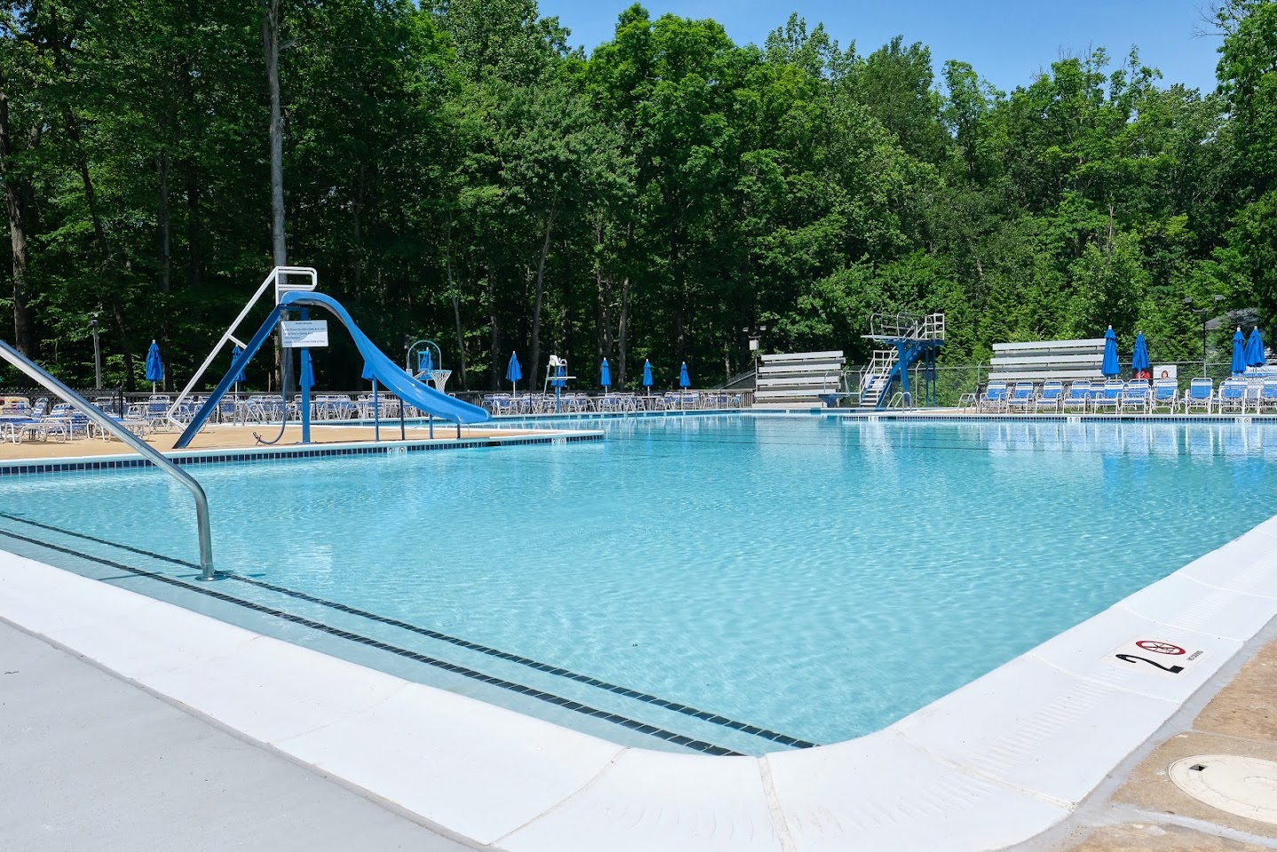 Family-friendly pool, featuring a high dive, a waterslide and a snack bar.