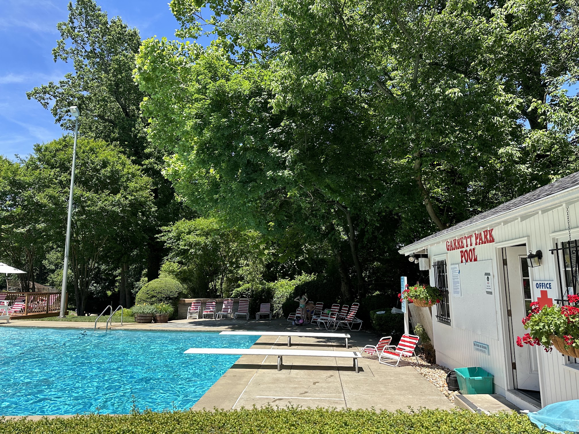 The Garrett Park Swimming Pool, located at 4427 Cambria Ave, Garrett Park, MD, is a popular community outdoor swimming facility active during the summer months. It typically features a main pool, a diving area, and a separate wading pool for young children, providing a family-friendly recreational hub with amenities like changing rooms and a snack bar.
