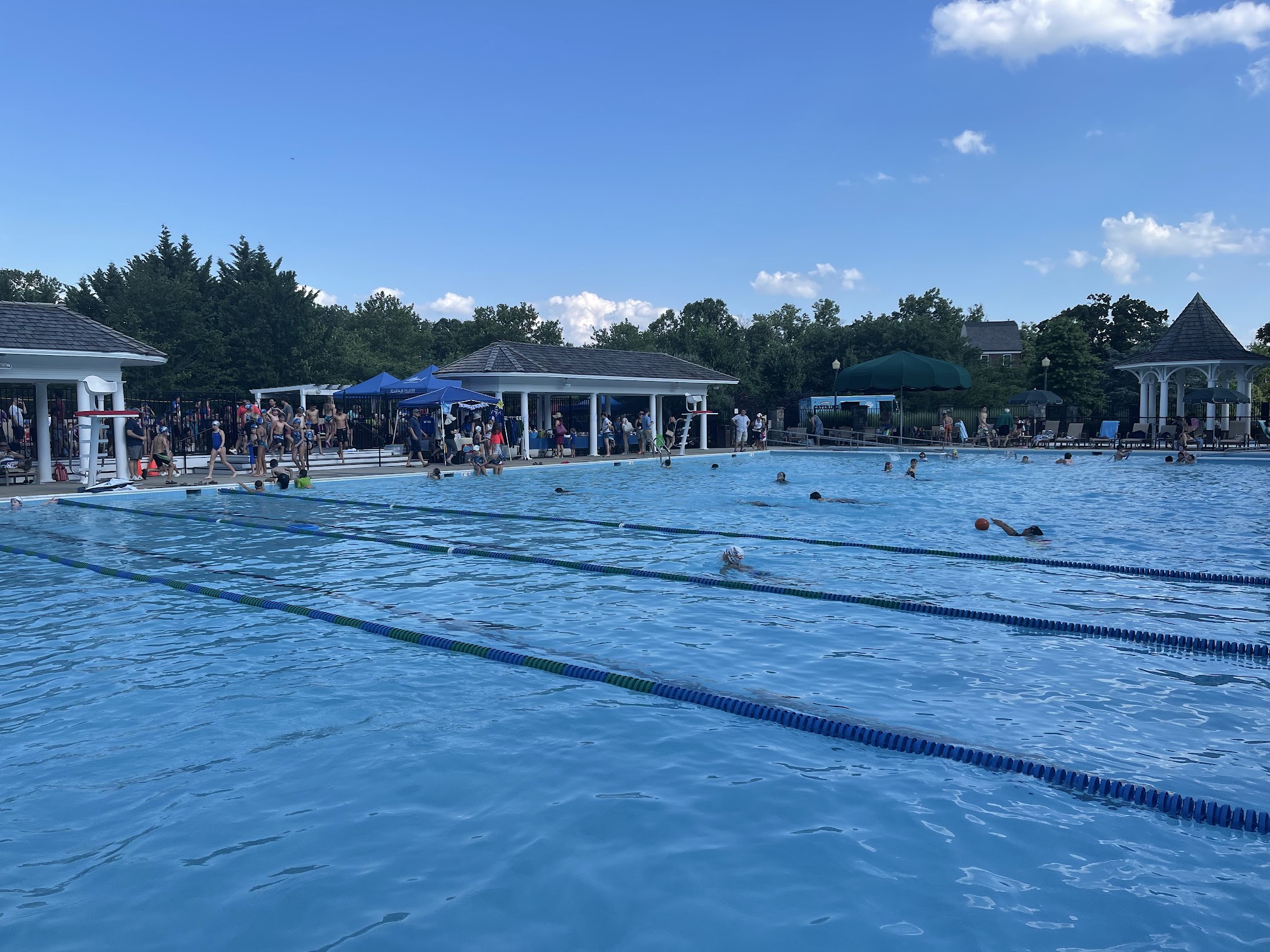 Kentlands Pool, located at 485 Tschiffely Square Rd, Gaithersburg, MD, is a seasonal outdoor community swimming facility that serves residents of the Kentlands community. It typically features a main pool for general swimming and lap lanes, along with a separate wading or kiddie pool for younger children. The facility is known for being family-friendly, offering a refreshing recreational space during the summer months with lifeguards on duty and essential amenities.