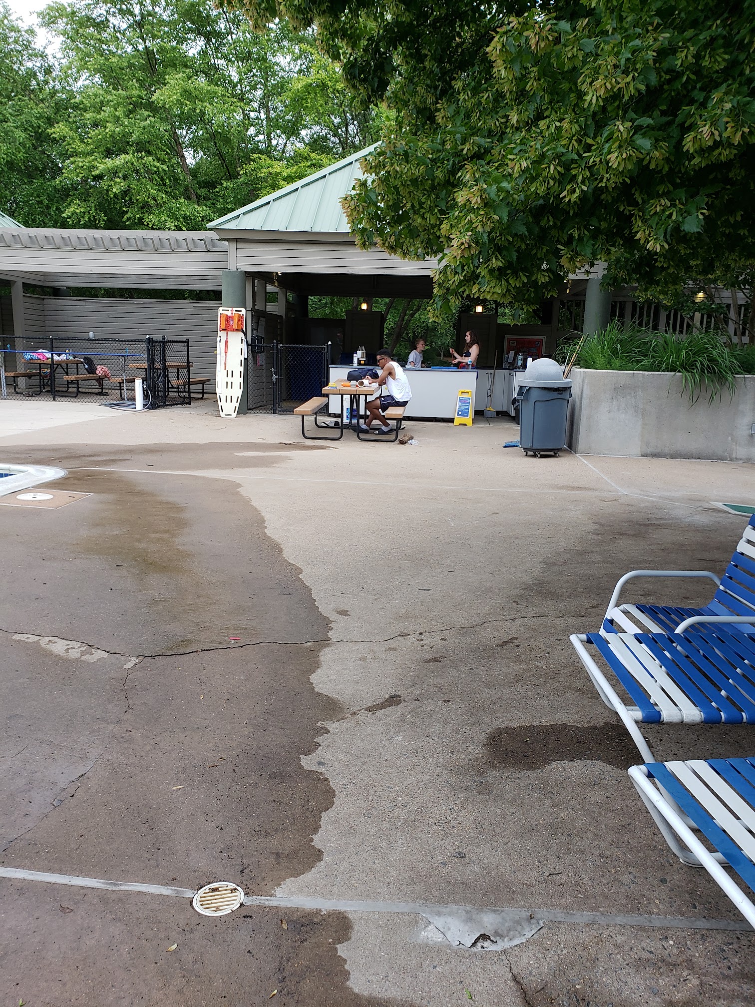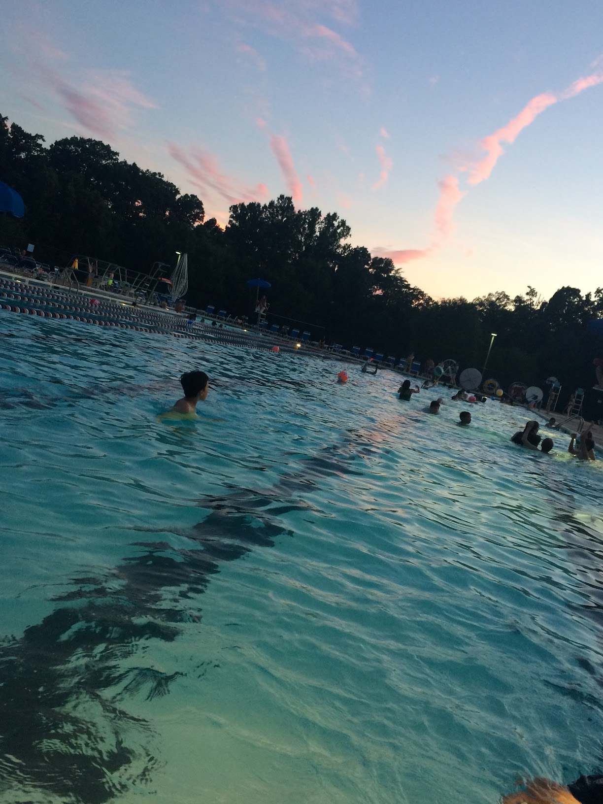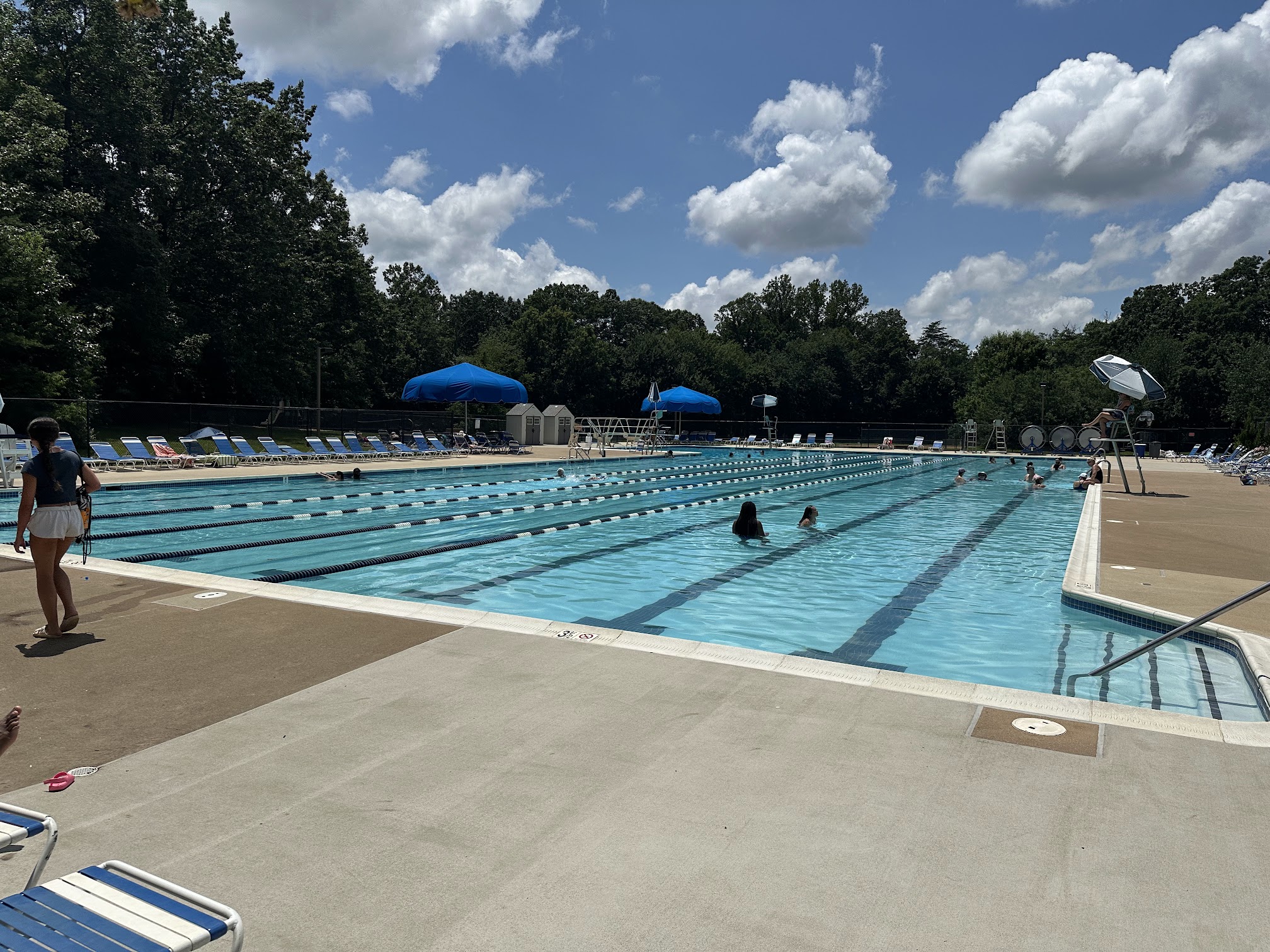 I'm only giving 3 stars because of the rowdy and rude behavior of a group of 4-6 unsupervised "big boys" who were bullying and disrespectful, putting chairs on the diving board and dominating the space not following rules, some refusing to exit the pool during hourly adult swim after being told repeatedly by lifeguards, and then other adults finally verbally insisting that they get out. Lifeguards were absolutely powerless (not that they tried too hard), and then after multiple complaints, management finally came and made a big show of circling the pool and listening to everyone who complained, and then, literally hours later when most of the troublemakers had gone home, they finally talked to one of the boys. It was so unpleasant and dangerous, and everyone was complaining. Their passes should be revoked and management should enforce rules.