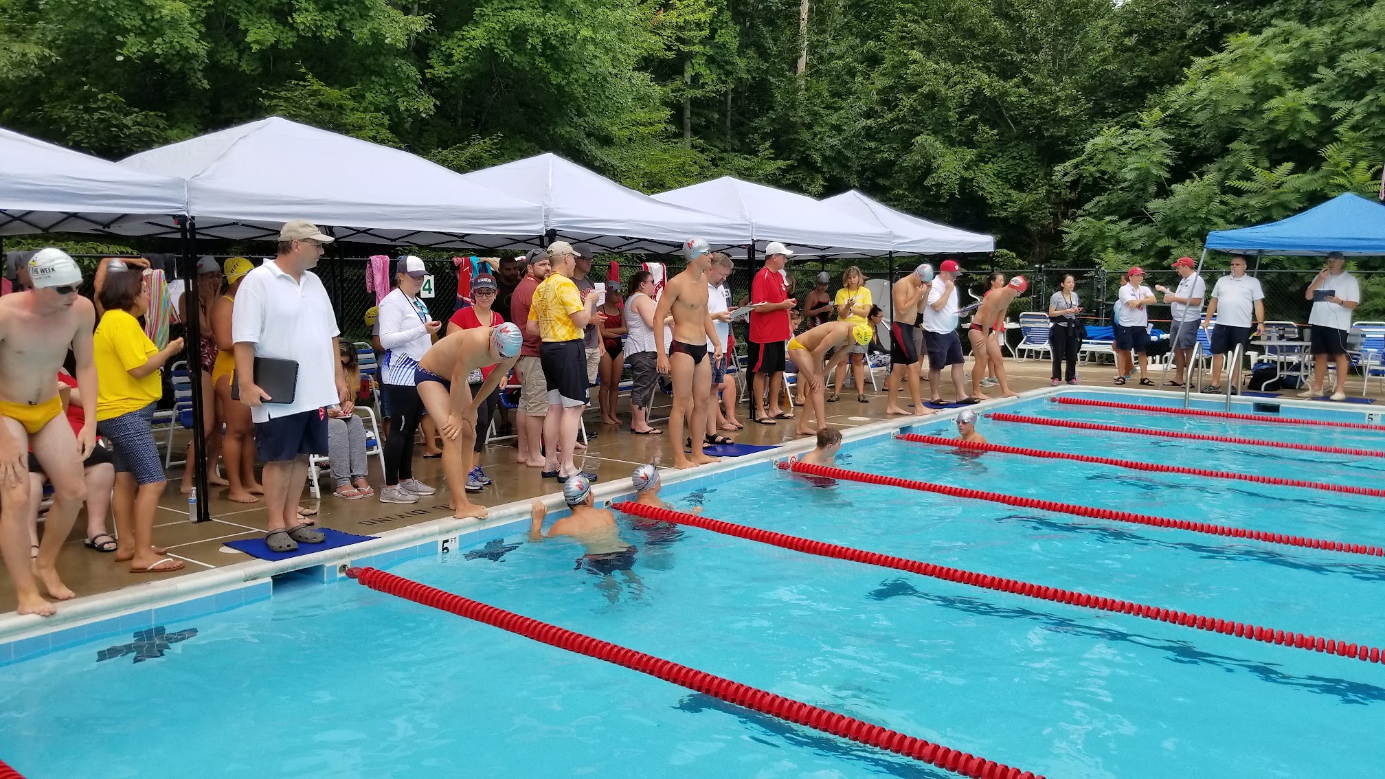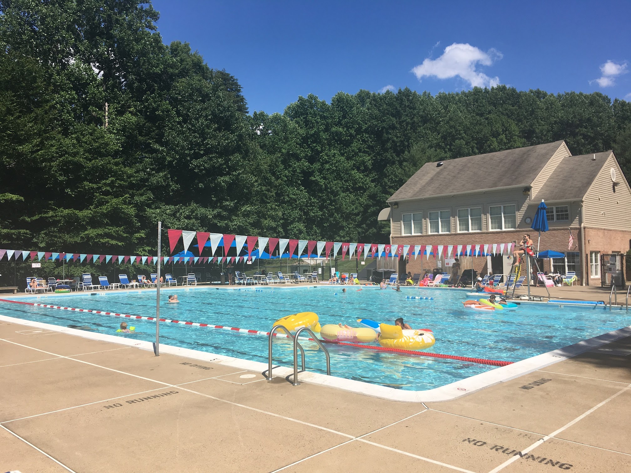 Beautiful pool in the woods. It’s open from the Memorial Day until the Labour Day every summer. This is the home of the Makos Meadowbrook Swim Team. It’s a really good opportunity for kids to learn to swim and improve their skills after it.