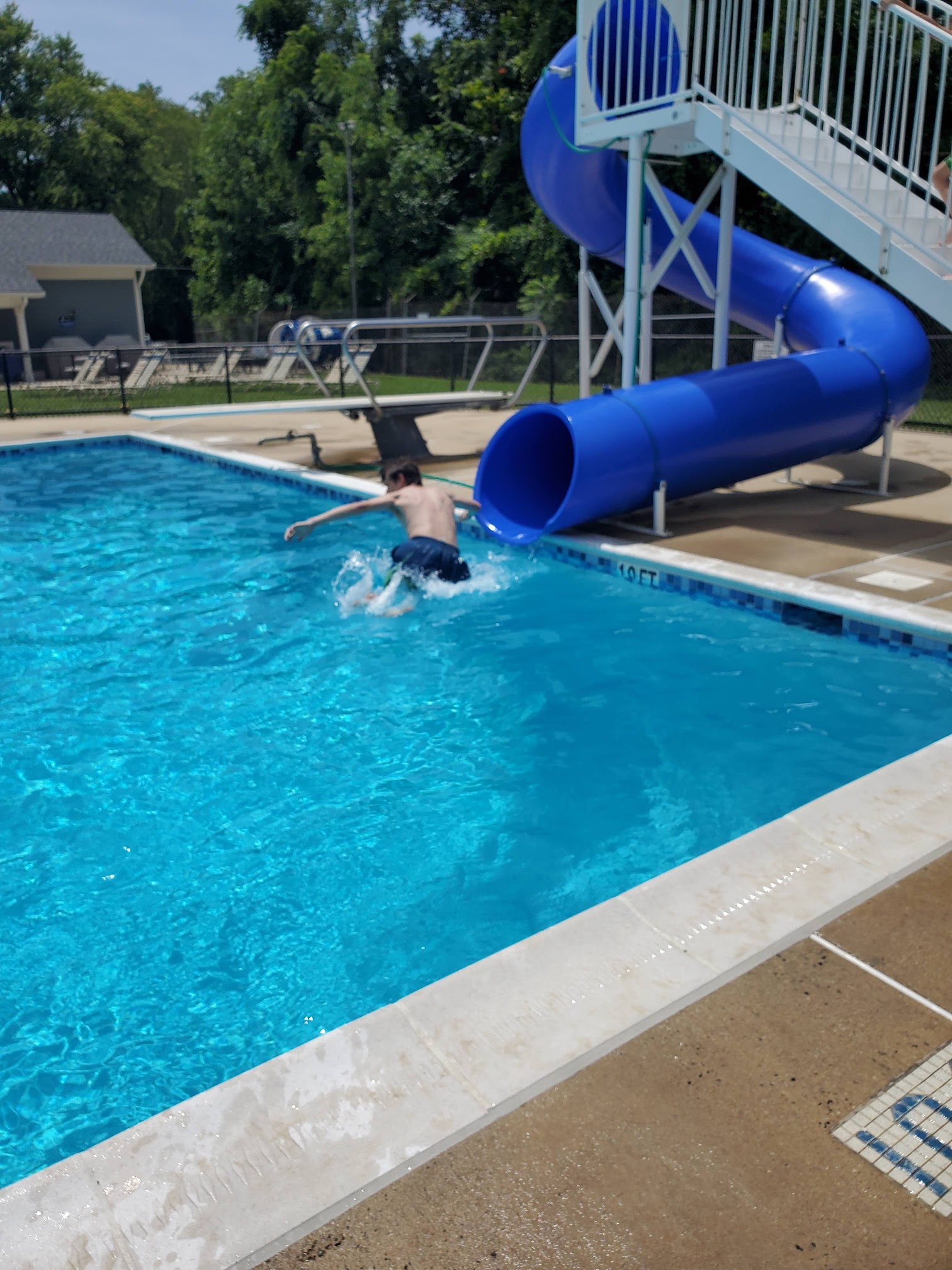 Love this pool! This is our 5th year (I think??) and we have so much fun here. The slide and diving board are great and the staff takes really good care of the place. The social director is amazing and planned lots of fun activities! We were away for margarita night (bummer!) but we had a blast at trivia night, last day of school party, and so much more. They have food trucks on the weekends, movie night, float night and so much more. I also love that both the kids and I have so many friends there!