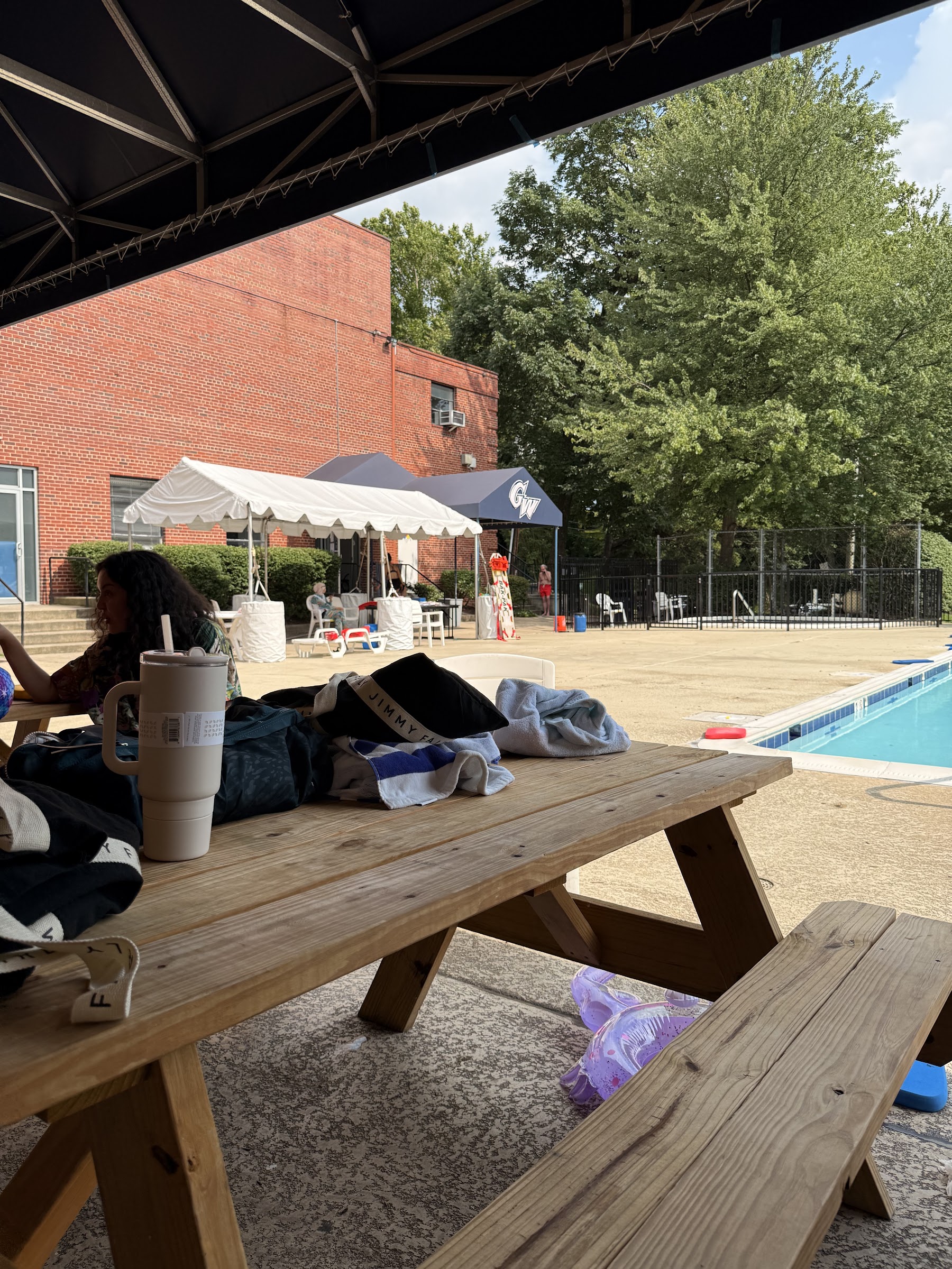 It’s a great location with a covered seating area with lounge chairs and benches, which is nice in the heat/sun. Life guards are nice enough. They have a variety of snacks available too (only cash). The pool is pretty big and gets busy sometimes, but during the week isn’t too bad. One thing that needs attention, they need to have cleaners as ppl leave trash all over the ground by the seating areas, which is pretty gross. Parking in the garage is free up to 3 hours and can be validated over that time. There’s street parking in front as well.