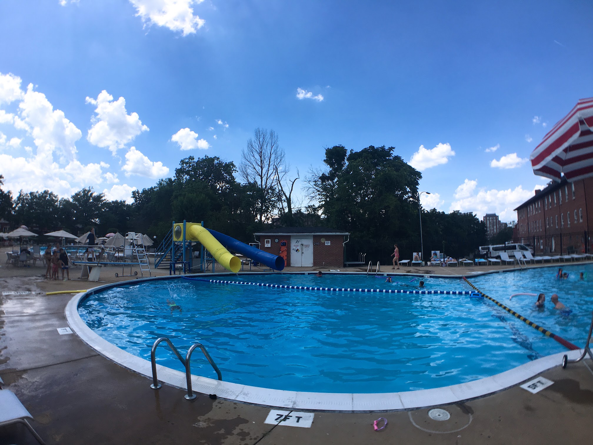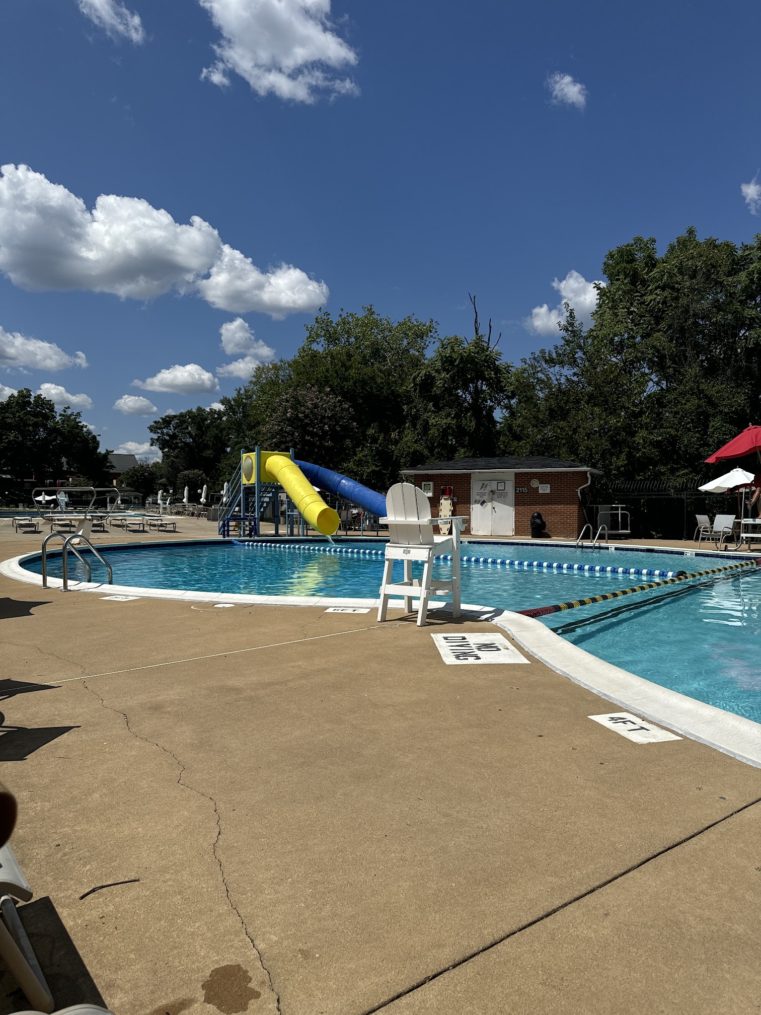 What are people saying (AI review summary)? This outdoor pool complex receives positive feedback for its nice, clean facilities, professional staff, and sanitary conditions, including refreshing water and clean bathrooms. It features multiple pools, including three large ones (two with lap lanes) and a small round pool for toddlers, along with plenty of umbrella tables and lounge chairs. A popular feature is the 15-minute adult-only swim period offered hourly. However, some visitors note issues with children occupying lap lanes, even with a dedicated kids' pool (with a slide and diving board) often being underutilized. There have also been complaints about pricing when parts of the facility, like the slides, are closed. Visitors are advised to bring mosquito repellent for dusk.