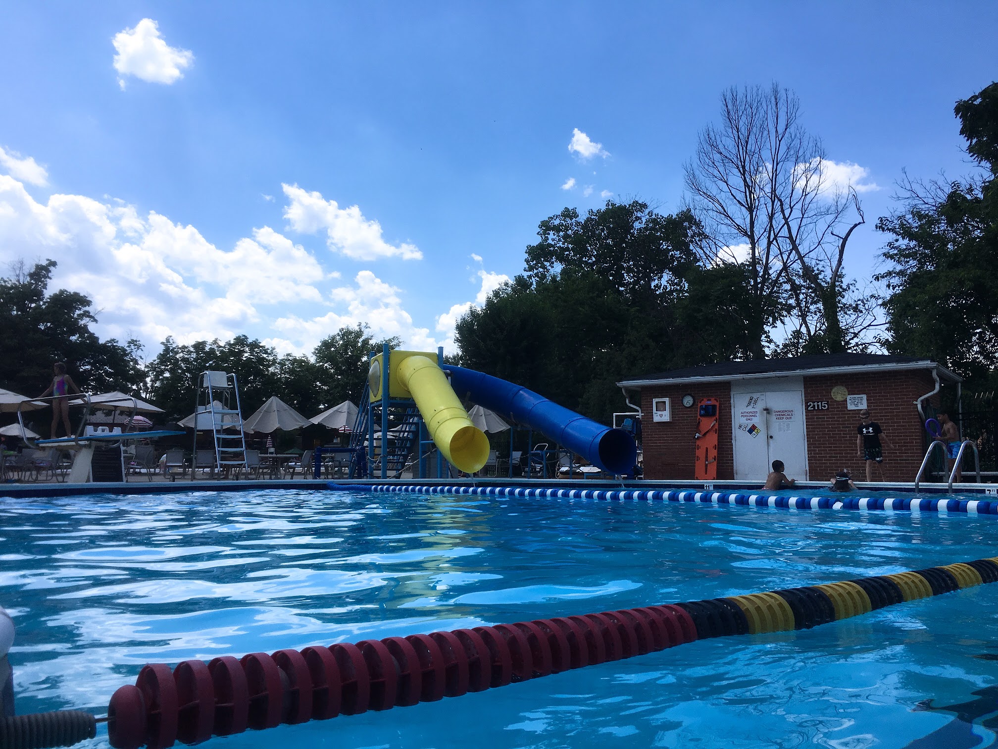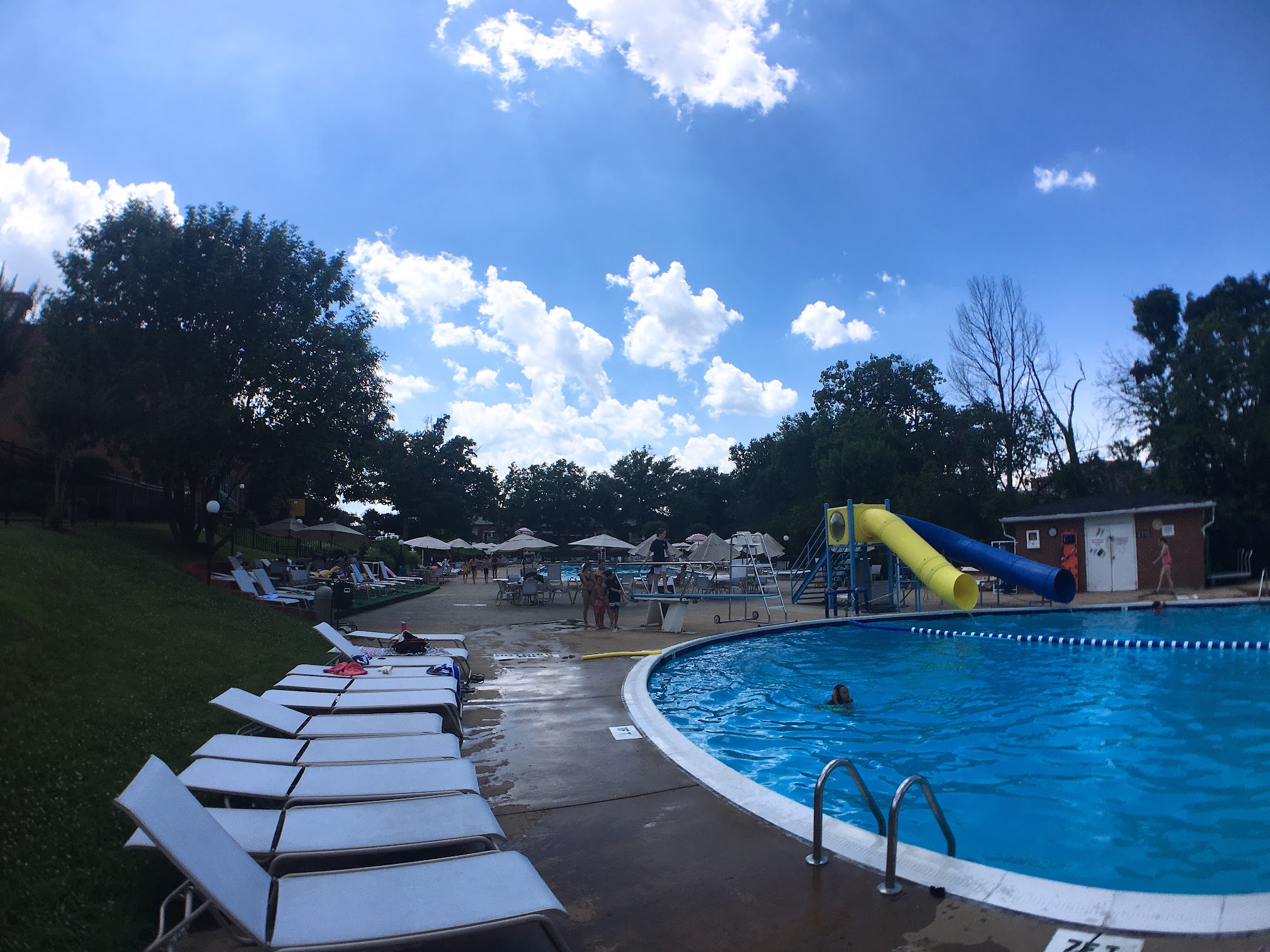 They have three pools here. Two with lanes for lap swimming. Unfortunately, there tend to be a lot of kids in the 50 meter lap pool and it takes up two lanes where four more people could split the lanes to swim laps. They do have 15 minutes every hour for adult only swim which is nice. It's odd because there is an entire pool for kids that tends not to be used as much and it even has a water slide and diving board.