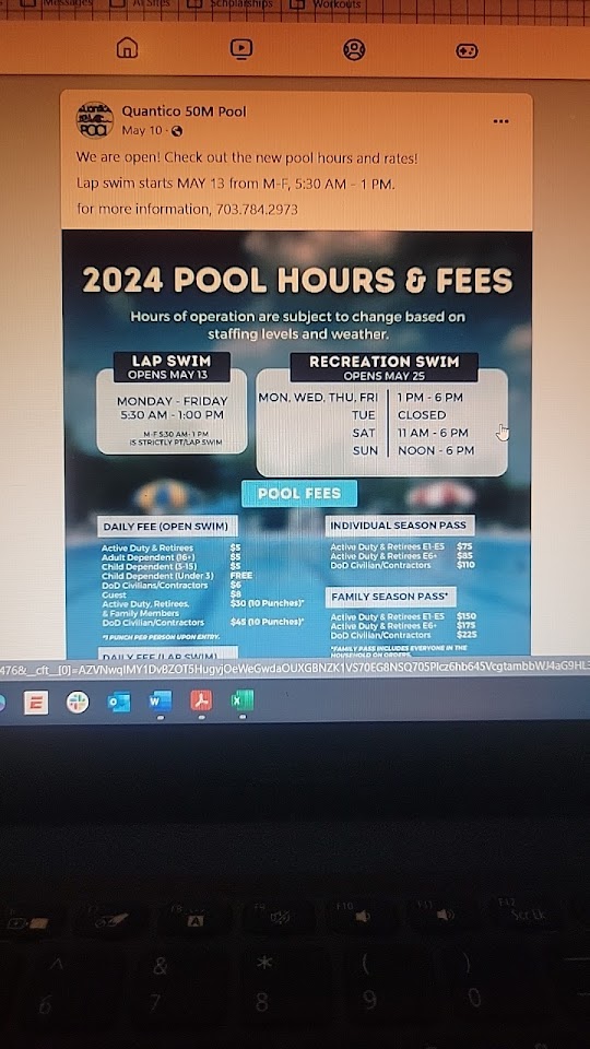 The Quantico 50m Pool, located at 3096 Range Rd, Quantico, VA, is a large indoor aquatic facility situated within Marine Corps Base Quantico. It serves as a primary resource for military personnel, their families, and authorized civilians, offering a 50-meter lap pool for recreational swimming, training, and various aquatic programs.