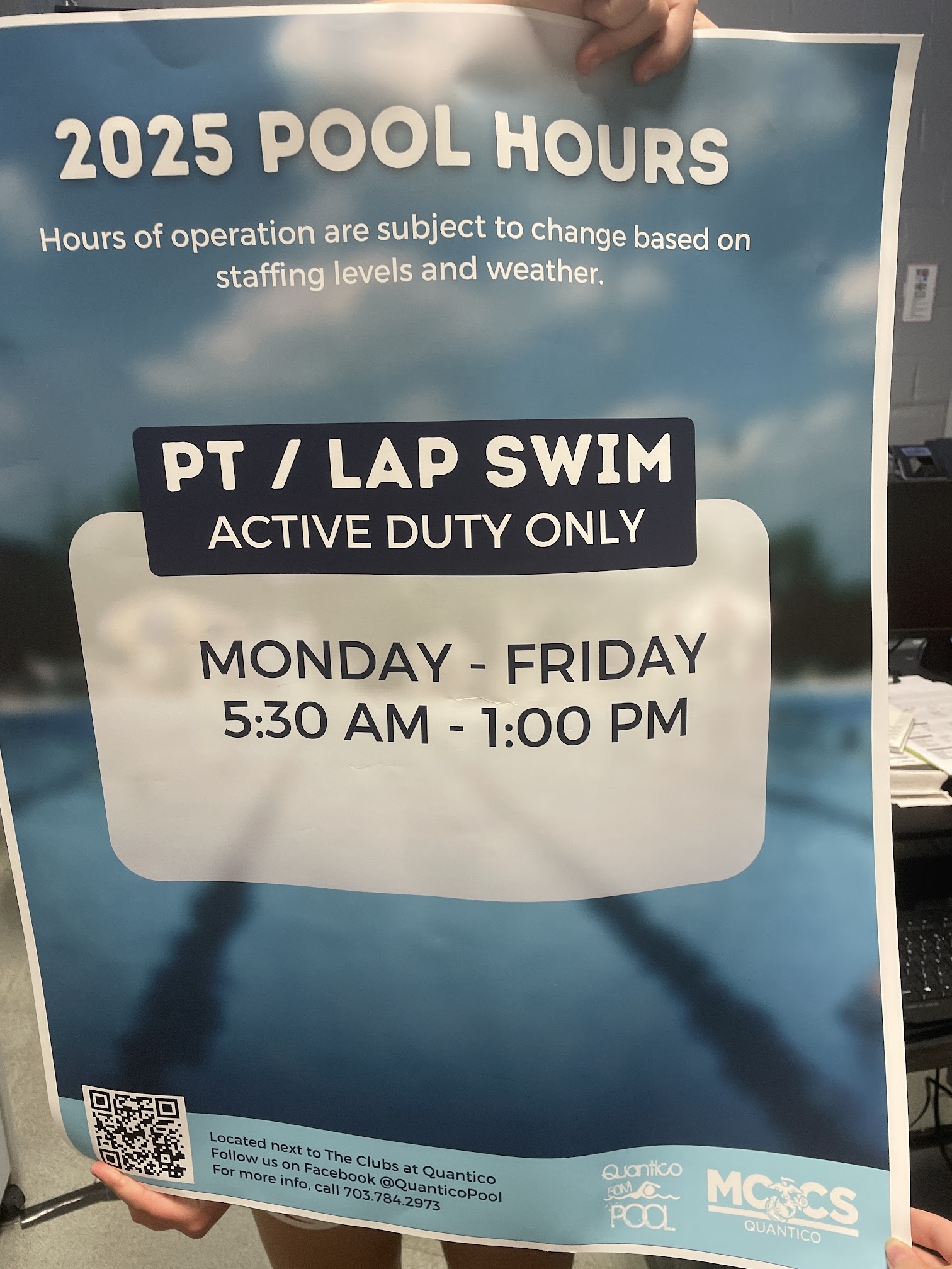 Open at stupid hours every week, but only avaliable to active duty? Cant go during the weekends, cant go after work, why is this pool even here?