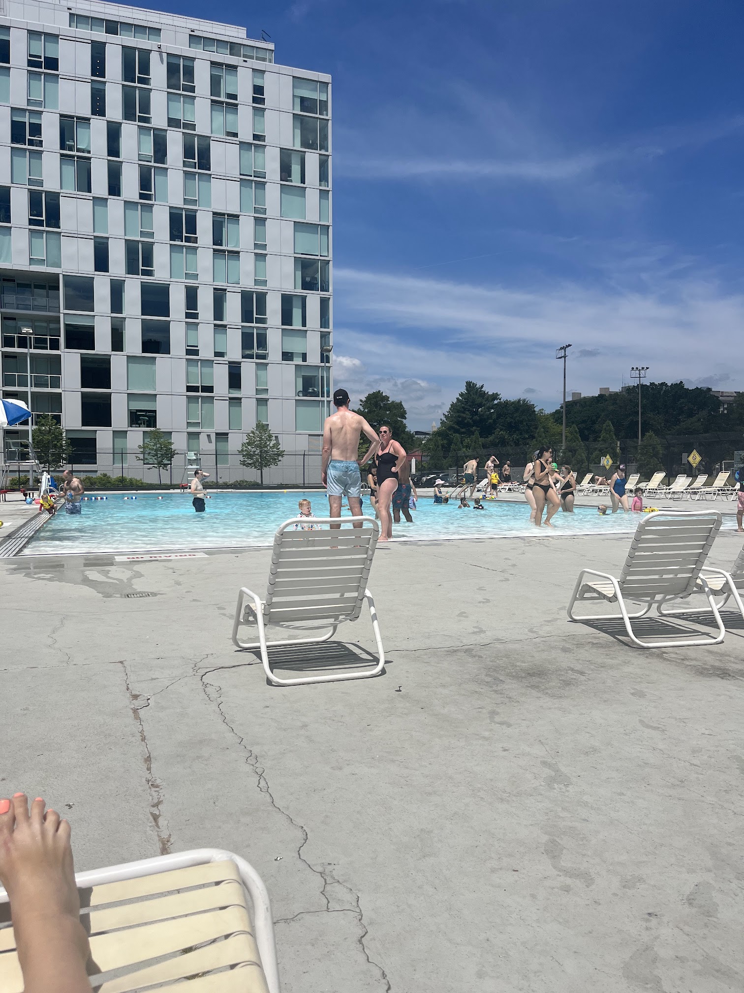 My family and I went to this pool on a whim because it was an outdoor pool and near somewhere we had planned to go later in the evening. I will say this: not all DC pools are created equal. This pool was overrun raucous, unsupervised and undisciplined kids. A young girl hit my husband in the face in the pool while jumping in and he called her out. She refused to apologize and swam away. When he told the staff, the lifeguard told him the little girl was her sister and dismissed him. Our infant daughter was almost run over multiple times (in the shallow end) by kids who didn’t care to pay attention. It was almost dangerous for her to be there. Then, as my husband was changing in the LOCKER ROOM, a group of teenaged boys harassed him for changing. In the locker room. Meanwhile, the locker rooms were unclean and showers don’t work. The baby changing table in the women’s restroom had DIRTY DIAPERS on it. This place is a mess. We won’t be going back.