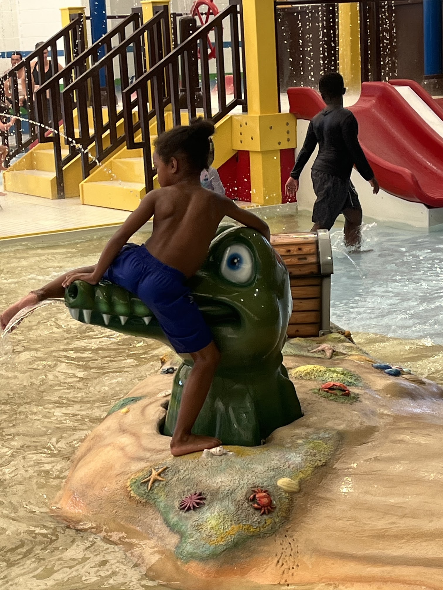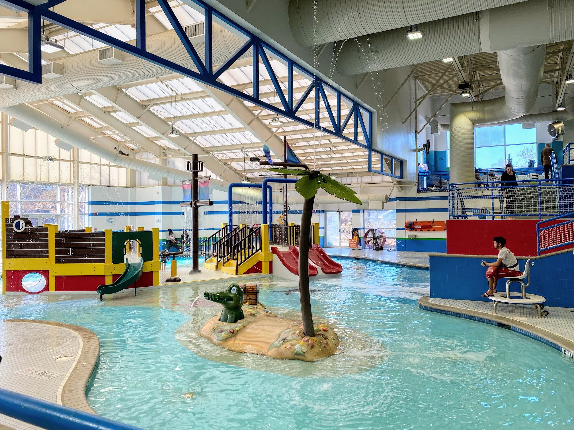 Really good indoor pool, shallow play area and hot tub. Outside picnic areas and maybe an indoor reserved area for parties. Kids shallow play area water was nice and warm so really great for small kids. At capacity by 1pm when it just opened at 12pm. We left close to 3pm and there was a line waiting. Wish they were more strict about no cameras in the pool areas.
