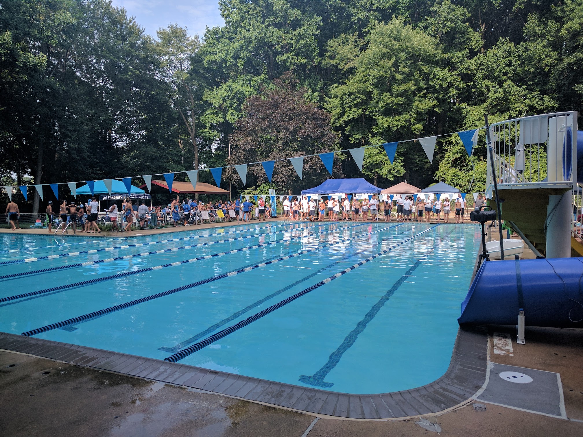 Open Memorial Day to Labor Day. A nice members only 50 yard 6 lane community pool with a deep diving area surrounded by trees, which makes it feel more relaxing and private. It is a great place for swim meets and parties in the pavilion all year round. Membership is reasonable at