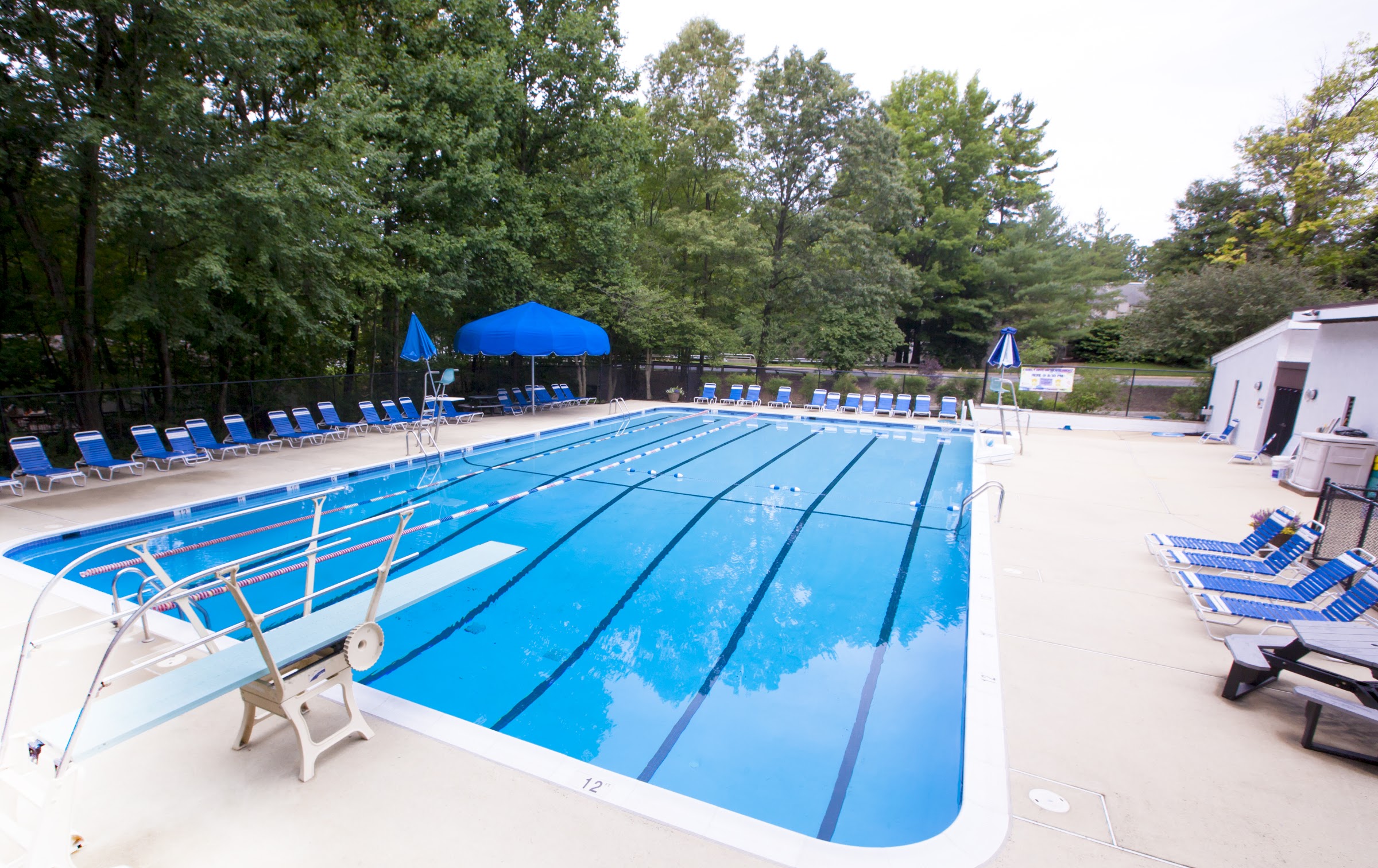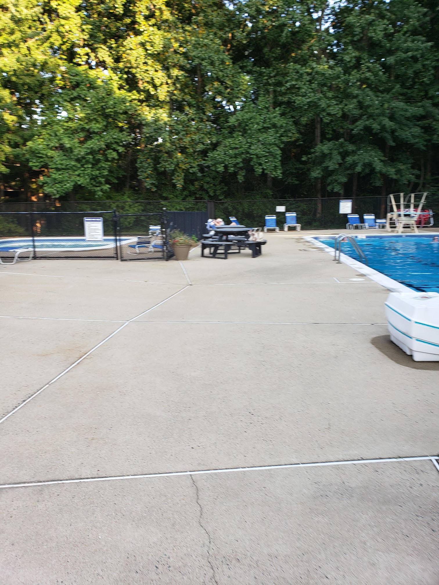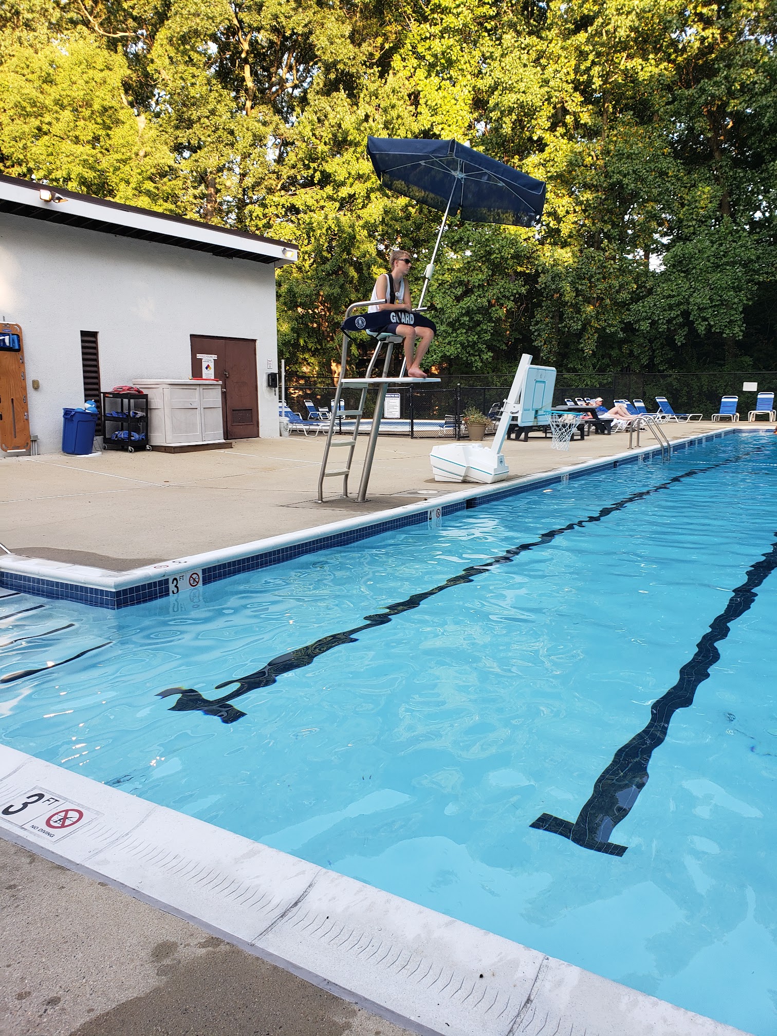 Small, quiet pool with 2 lap lanes. There's plenty of shade due to the tree line but that also means the water can be a bit cool. I find it to be a great place for a lunch time swim.