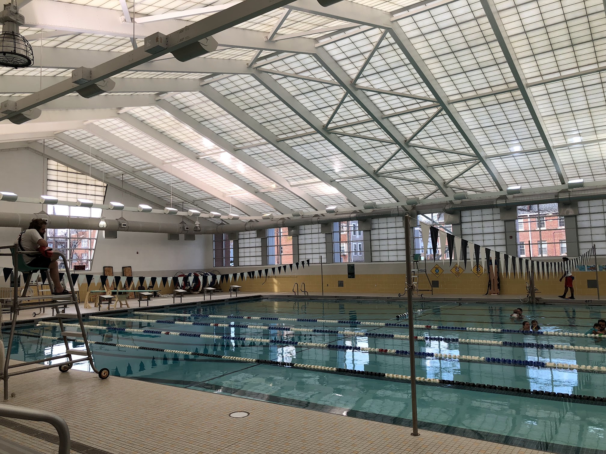 My experience with the recreation center is currently limited to the pool where my son goes for swimming lessons, but it has almost completely blown away my expectations. This center is clean and well-staffed with mostly friendly workers that almost always pleasantly greet us when we come in. The temperature inside is the opposite of whatever it is outside, meaning that it’s comfortable. The whole place reeks of chlorine, though, because of the very large indoor pool. The pool itself is big, clean, and safe with a number of lifeguards that are watching from their perch and others in an office close by. They all have been very attentive, never straying from their mission. There is a wonderful kiddie pool section with a spray tree so the tots can have some fun, and the entrance to this pool is a slight slope that allows kids to get in at their own pace. Within this area is the spa, which is often used and seems to be pleasant. The kiddie pool feeds into the larger pool through a narrow channel with the depth slowly increasing, giving parents and kids the option of how deep they’d like to go. There is only a couple of feet of water in the kids area, and the channel to the bigger pool area goes to 4 feet before you’re free and out in the main pool. The lane lines are tight and properly maintained, keeping swimmers from drifting too far and hitting others or moving into shallower waters. The pool is heavily chlorinated like all public pools, and the pool enclosure is very warm and humid. The pool is not hot, and my little son is chilly when he’s done with his lessons. You’ll sweat if you’re sitting out of the pool in anything more than a t-shirt and light pants. There is a very loud hum present, making it hard to talk to others around you. The locker rooms are large and clean, with nice showers to help you rinse off all of the chlorine. In addition to the swimming pool there is also a large basketball court area with clean floors, a small gym with well-kept equipment, a billiards table in the lobby, and other rooms that I have yet to explore. There’s also tennis courts outside. This is a really nice community center that you should definitely visit if you live nearby or have thought about coming!