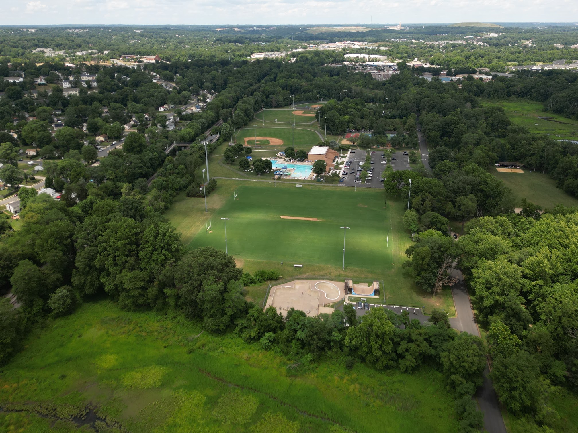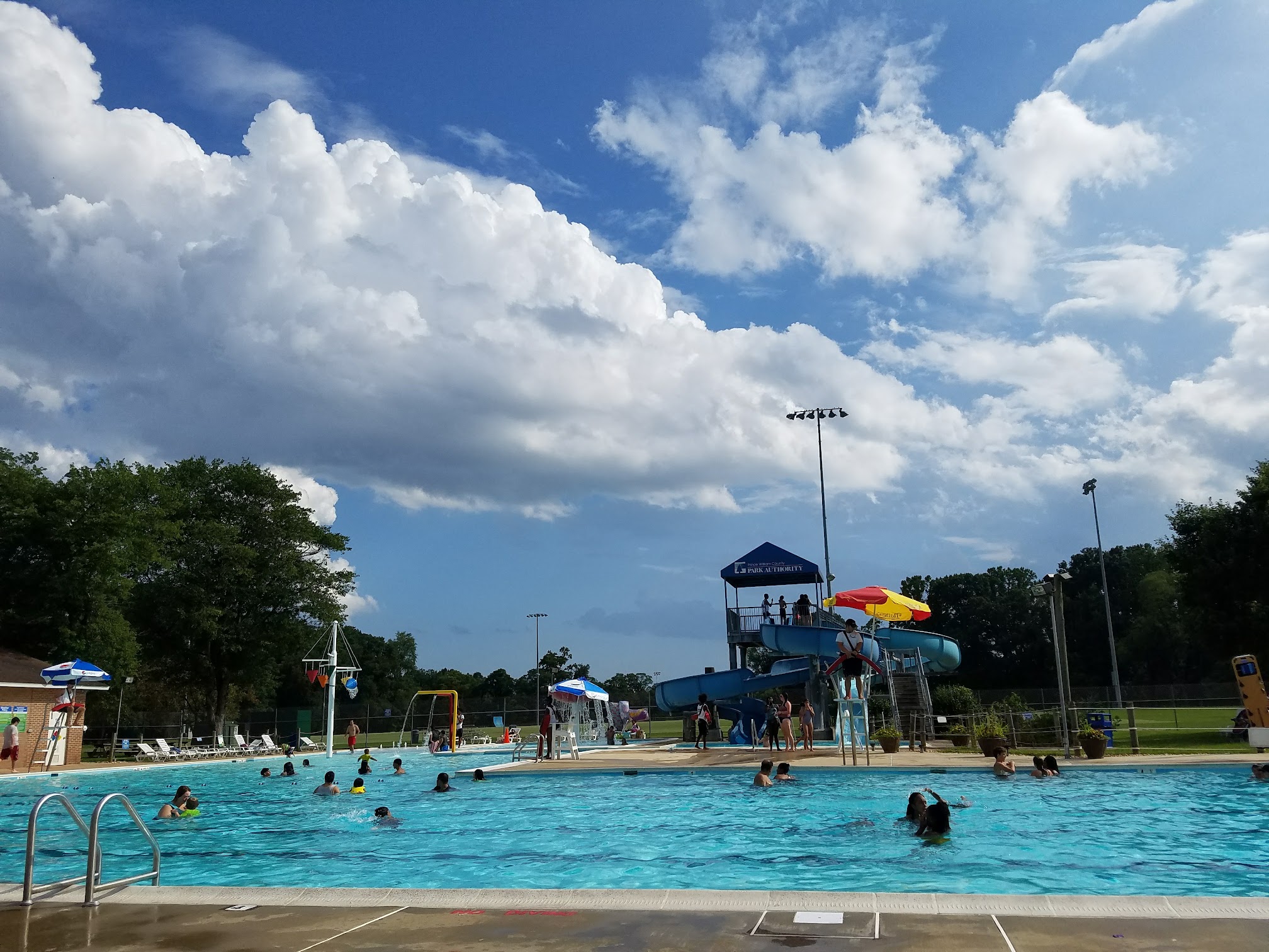 Very nice park and the grounds are well kept. 4 baseball diamonds, skate park, basketball courts (6 hoops), kids playground, trails, picnic area, and a huge pool with 2 slides and two diving boards. The pool has music playing, lifeguards, and a snack bar with hot dogs, macaroni and cheese, chicken tenders, and pizza.