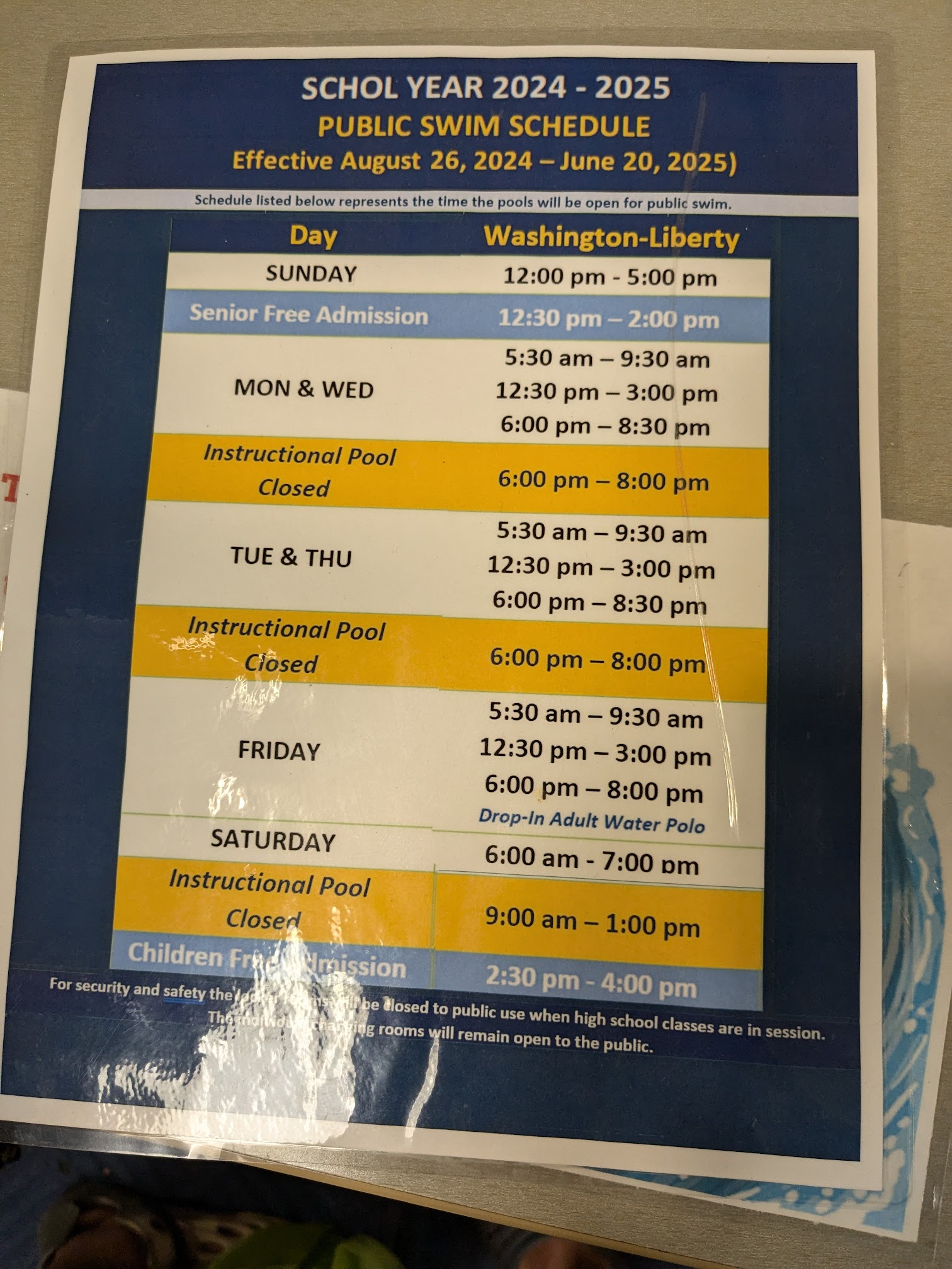 Updated August 8, 2025: I promised to update my 1 star review if I saw improvement and I did see positive changes today. I’ve bumped it up from one to three stars because they completed a huge summer maintenance program. They cleaned the showers, steamed the pool deck, cleaned tiles, fixed some water issues, and more. It’s definitely cleaner and it smells much better. But it still hasn’t moved up to four or five stars because today there was no hot water in the shower. I don’t know what it’s like to maintain a facility this complexity. I’m sure it’s challenging. And there’s probably never enough money. But between this pool and Long Bridge, I haven’t had a hot shower after a swim in three months. ***** The pool is fine. The hours are adequate. But I am taking two stars off for the nasty women’s locker room. Masses of snarled hair, wet TP, and overflowing trash cans were just gross. But what was worse was the smell of urine all over…in the showers, toilets, and changing area. Plus moldy shower curtains. Does this ever get cleaned? I swim in all the Arlington pools and this locker room is the worst. Since the others are better, it suggests a management issue at this one. (UPDATE: it seems to be getting worse. Today the shower was so disgusting, I had to leave without taking a shower. And I’m not like a super clean freak. It is a public locker room. I don’t expect it to be perfect. But there’s been something disgusting in the shower for two weeks so it seems like no one is truly cleaning the showers. I’m taking two more stars off until I see improvement.)