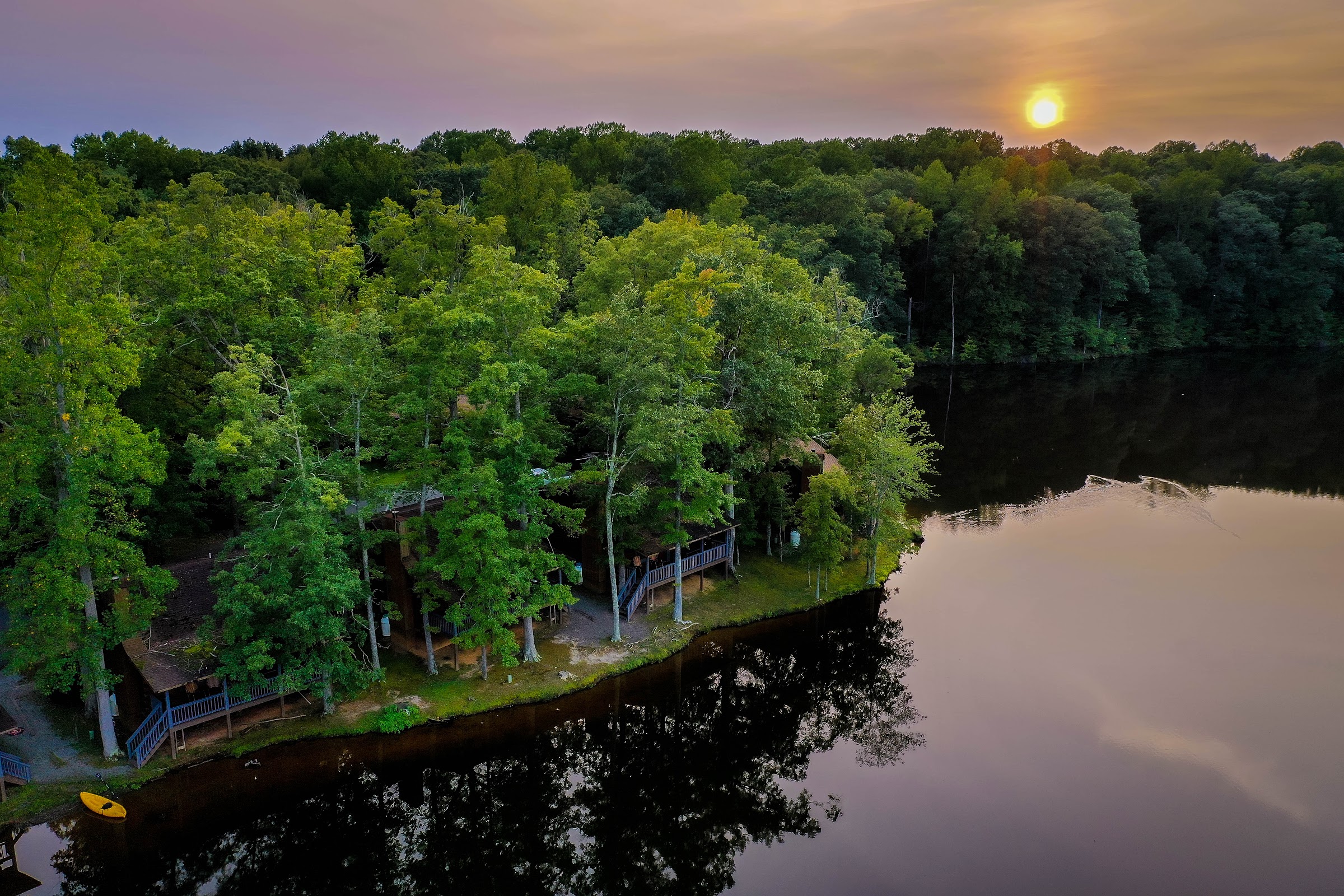 We stayed in a 6-person cabin with hot tub. It was like a tiny log cabin--very comfortable with kitchen, medium fridge, two small bedrooms and sleeper sofa, AC. Very clean! Very quiet at night with view of the lake. Most of the cabins are right on the lake with a picnic table and fire pit. The large outdoor pool just up the hill from the lake and beach was great. Adirondack chairs at the little beach near kayak, etc rental. The kids really enjoyed it. Midweek rates were reasonable. We would definitely visit again. Many excellent dinning options off-resort a short drive away (Harry's Alehouse was fantastic!). Very restful getaway. Reservation staff were so nice and friendly.