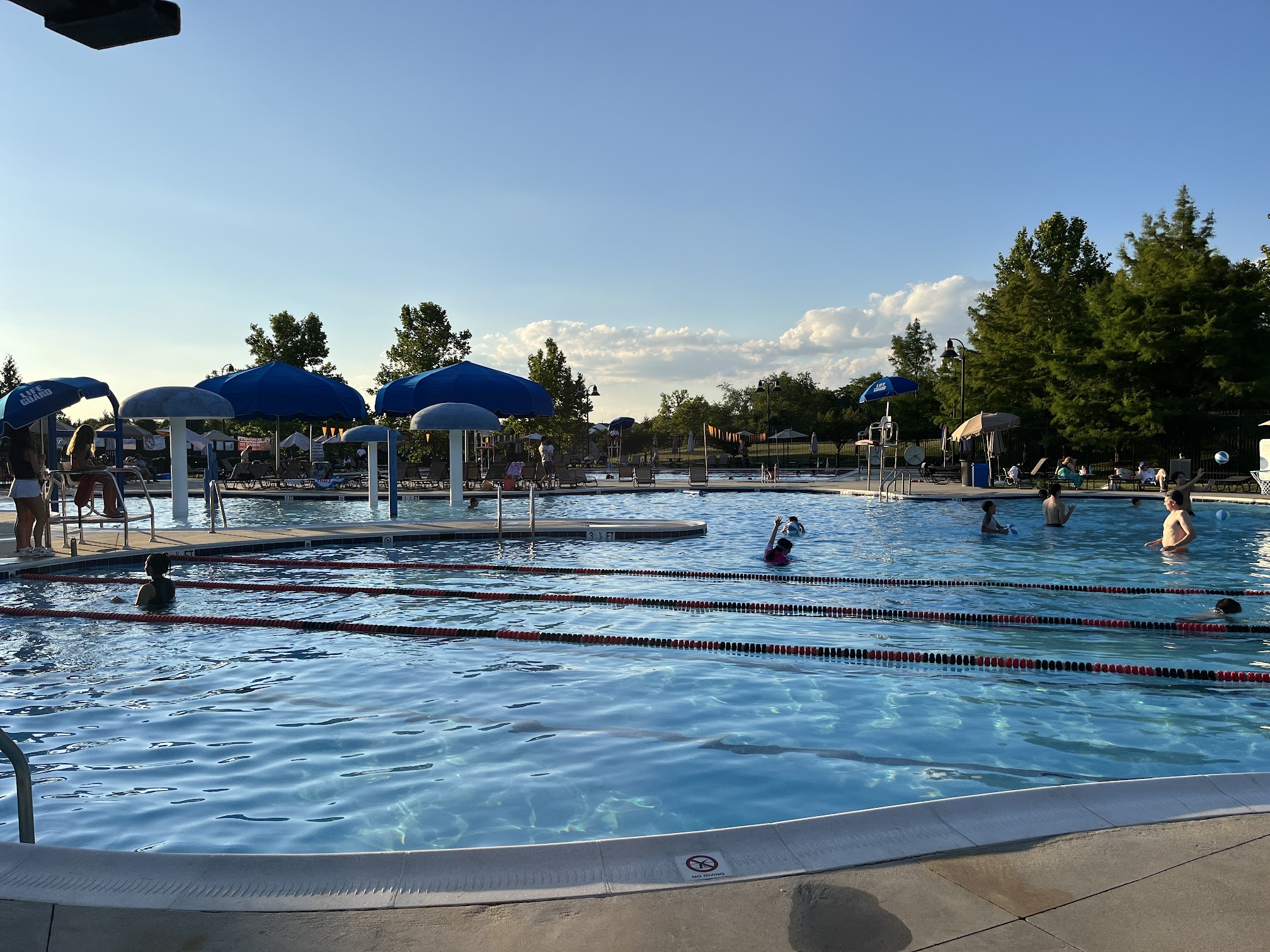 This is my community pool. Ive lived in the area for my whole life. So i know this place like the back of my hand. The community area isnt really worth renting. The area is pretty small and can be over crowded because of all the extra tables and chairs. The pool is nice there are 3 pools which are *usually* clean. There is a swim team. For anyone that is intrested in that. But they close the best pool for them to practice. Which is... pretty dumb. Espessially considering they close it for a LONG time. Umbrellas are like not the most reliable some are broken. The snack shop replaced two vending machines which is stupid. Because i mean the food in the vending machine was honestly better. On top of the fact that on weekeds you have TWO holes punched off your visitor's card. Not just one. For one person. But TWO. I like the ice cream trucks that pass by espessially the one with shaved ice. The. Fourth. Of. July. Don't go, seriously. Last time they were so crowded there wasn't even a place to sit. And they closed the other pool for swim stuff again. Honestly theres a perfectly good indoor pool not even 4 miles away to do that. Doing all that in a community pool is pointless plus they have kids first so close as well. Oh and they shut down the entire pool when its *drizzleing* you have to wait a long time to go back in. All in all a good place to go when its not over crowded. Has its cons but its a nice place.