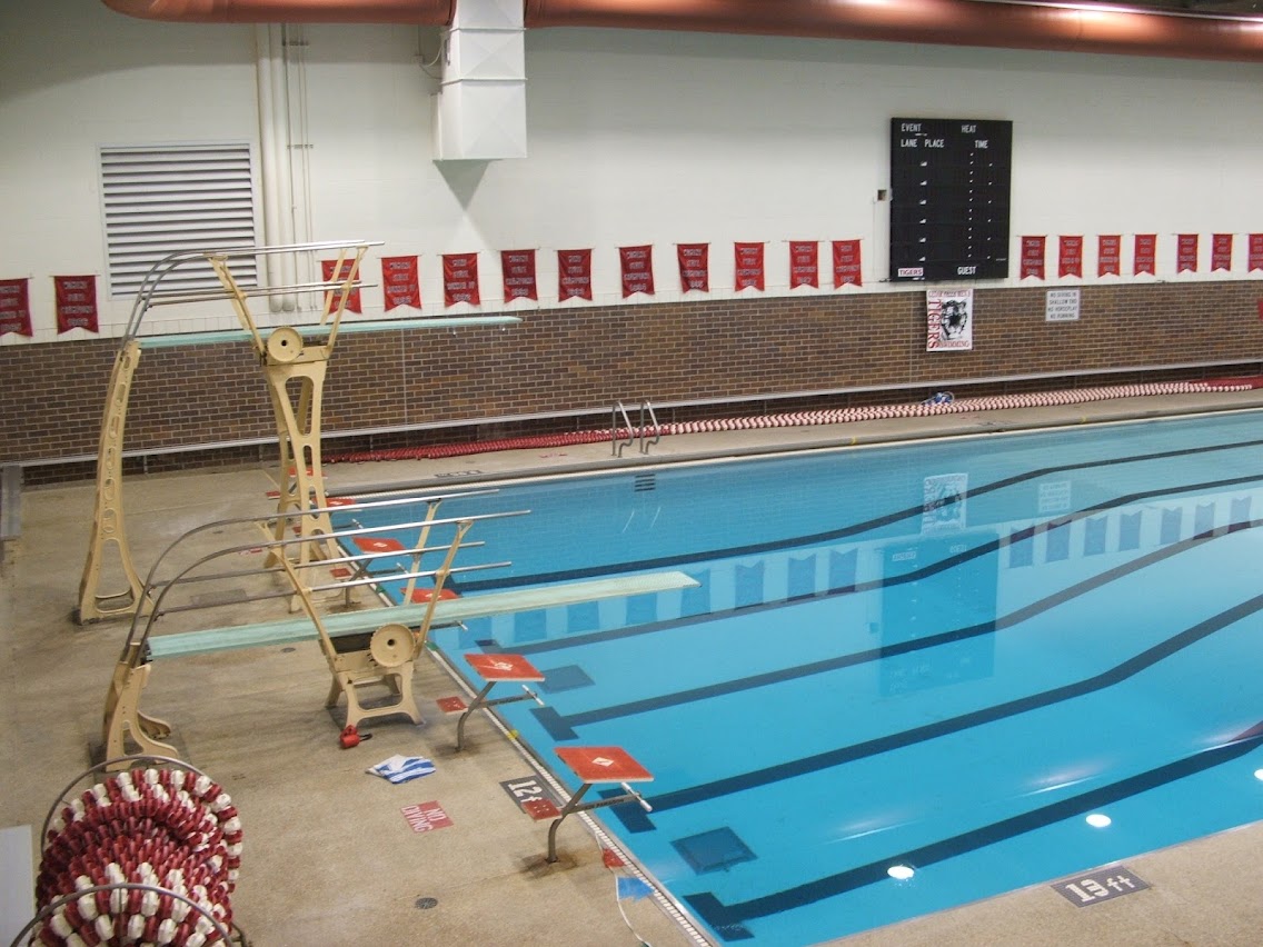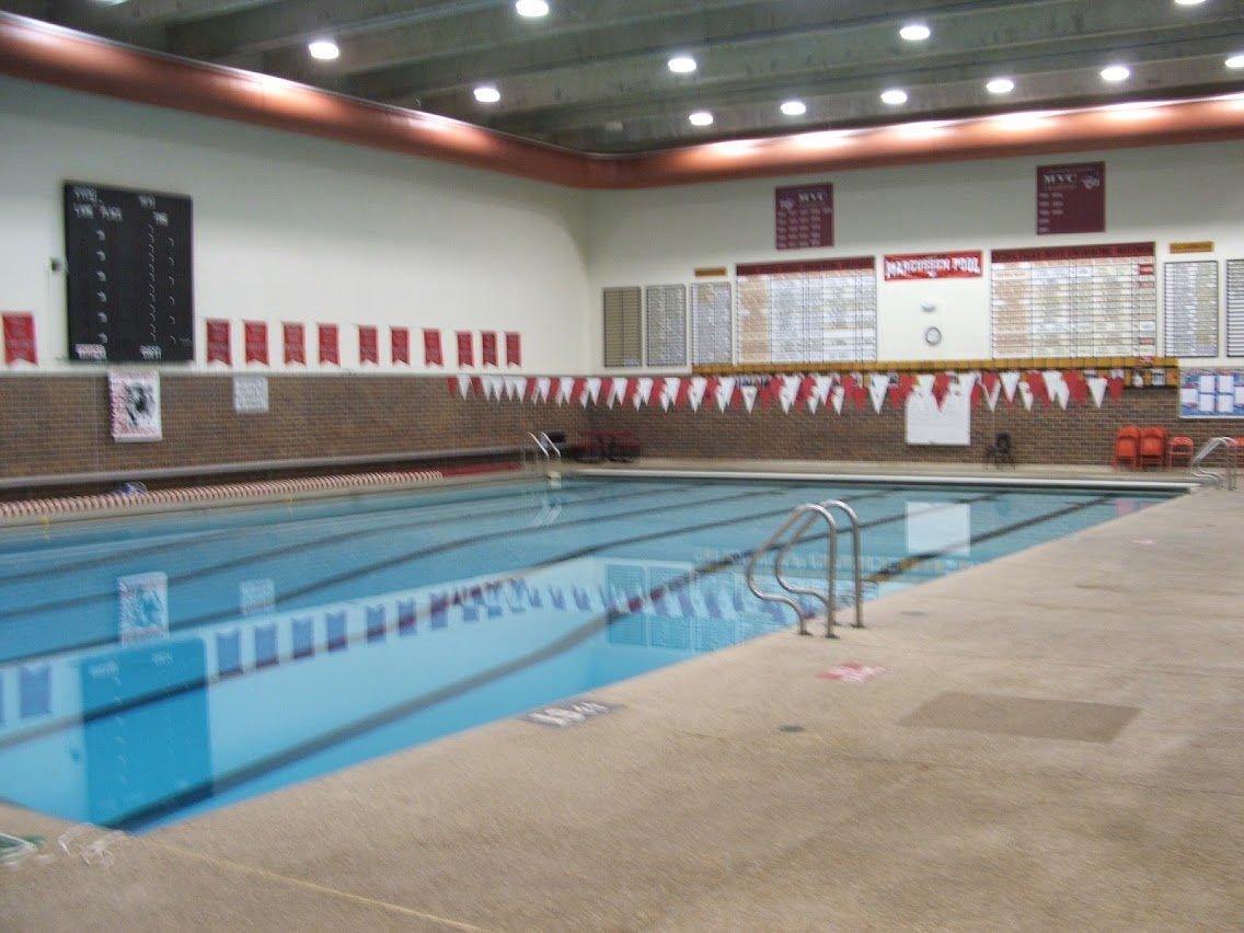 25M pool with spectator deck. We attend lap swims, although there are also open swims and it is most used for swim meets.