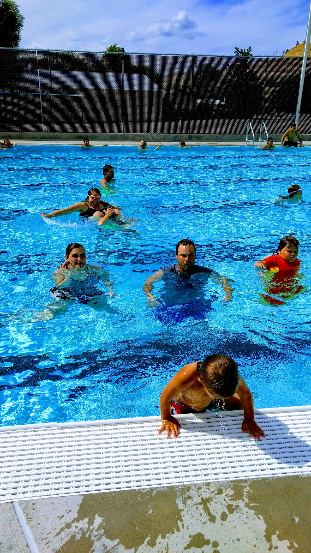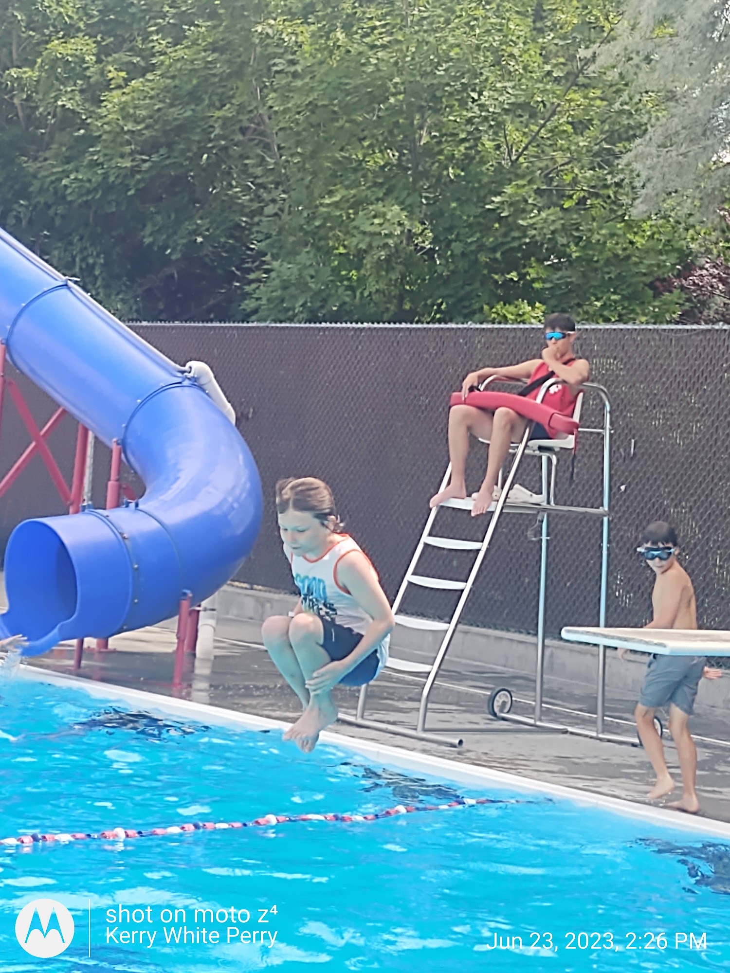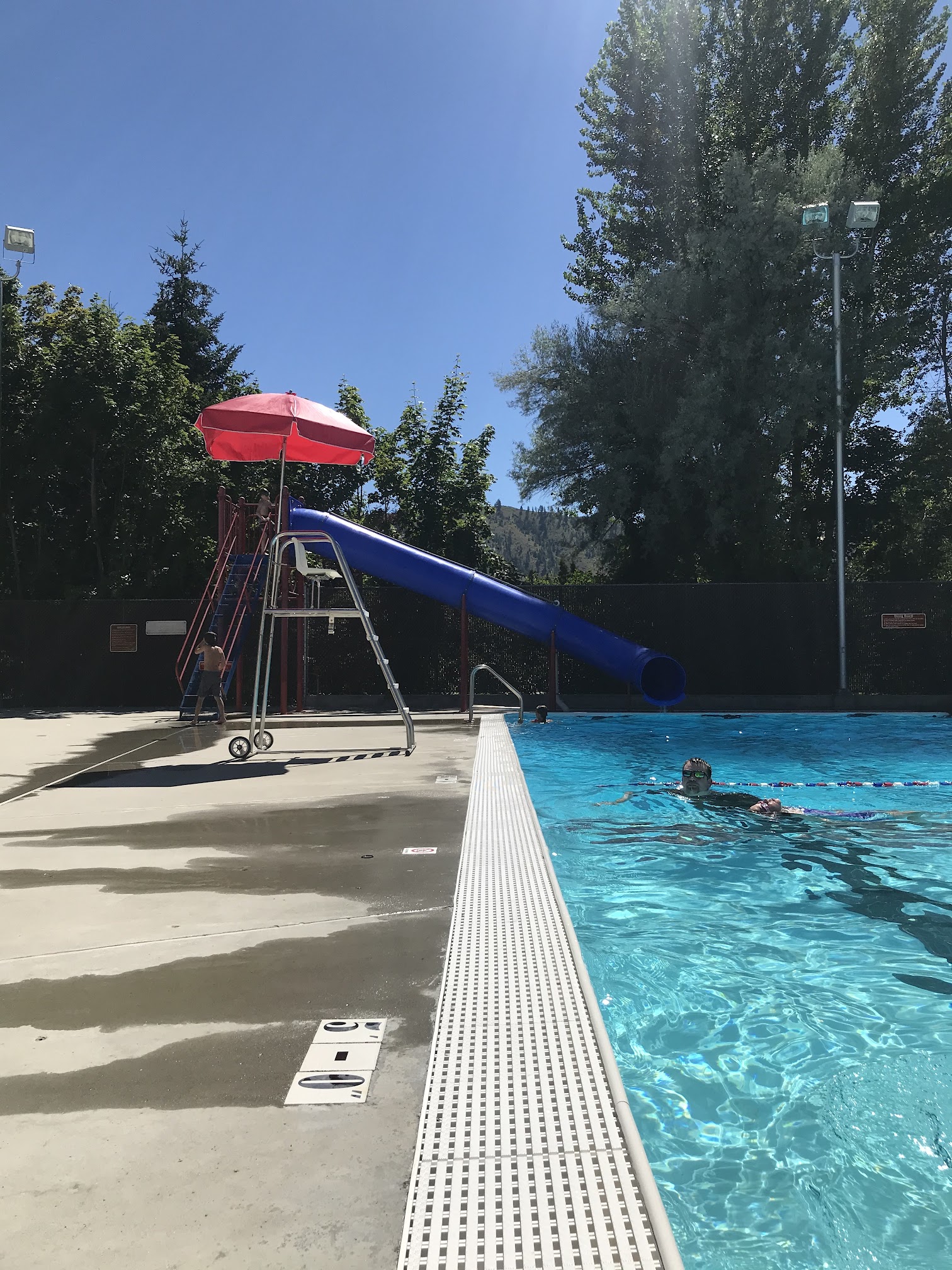 Great place. Clean, safe, and fun. Diving board and slide. shallow end and deep end.