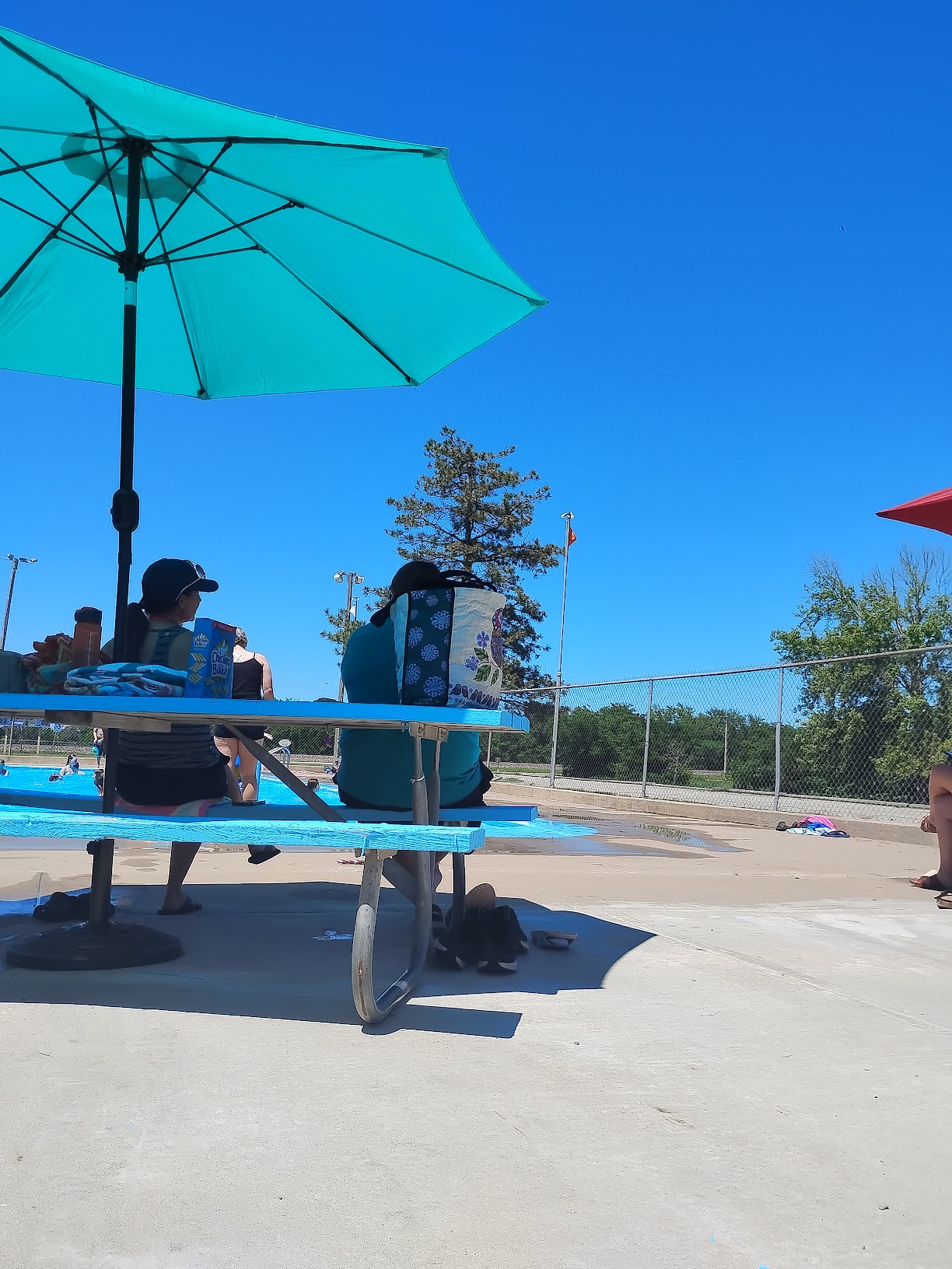 Watched my granddaughter play ball near the pool. Nice, clean area. Take your lawn chair, the bleachers sure get harder the longer you sit.😊