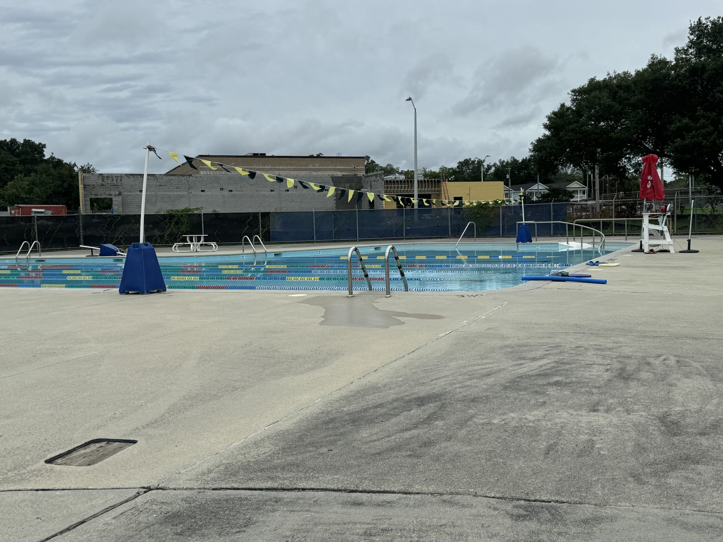 The location is easy to get to and the pool has plenty of space and is clean. Changing area, showers, and restroom available but weren't air conditioned so its pretty muggy in there. Can't beat the price and the life guards were nice. This pool does have a lack of shade so just be prepared for that. I prefer this location over the Legion stadium because you don't have so many cars driving by.