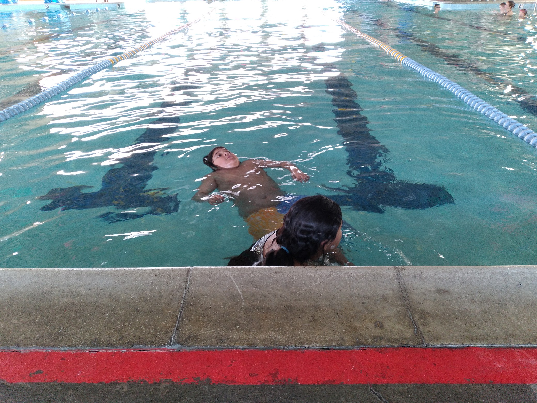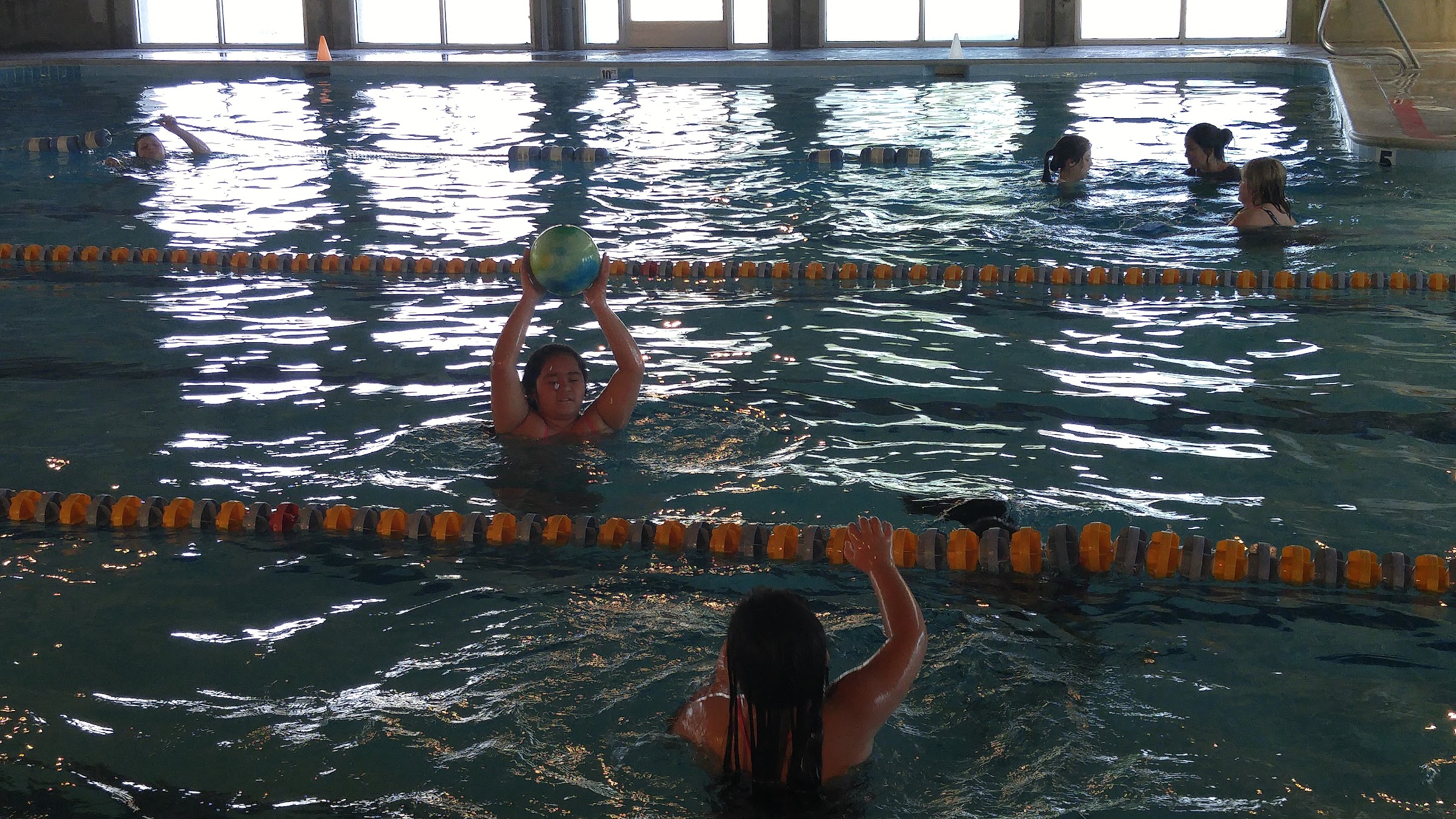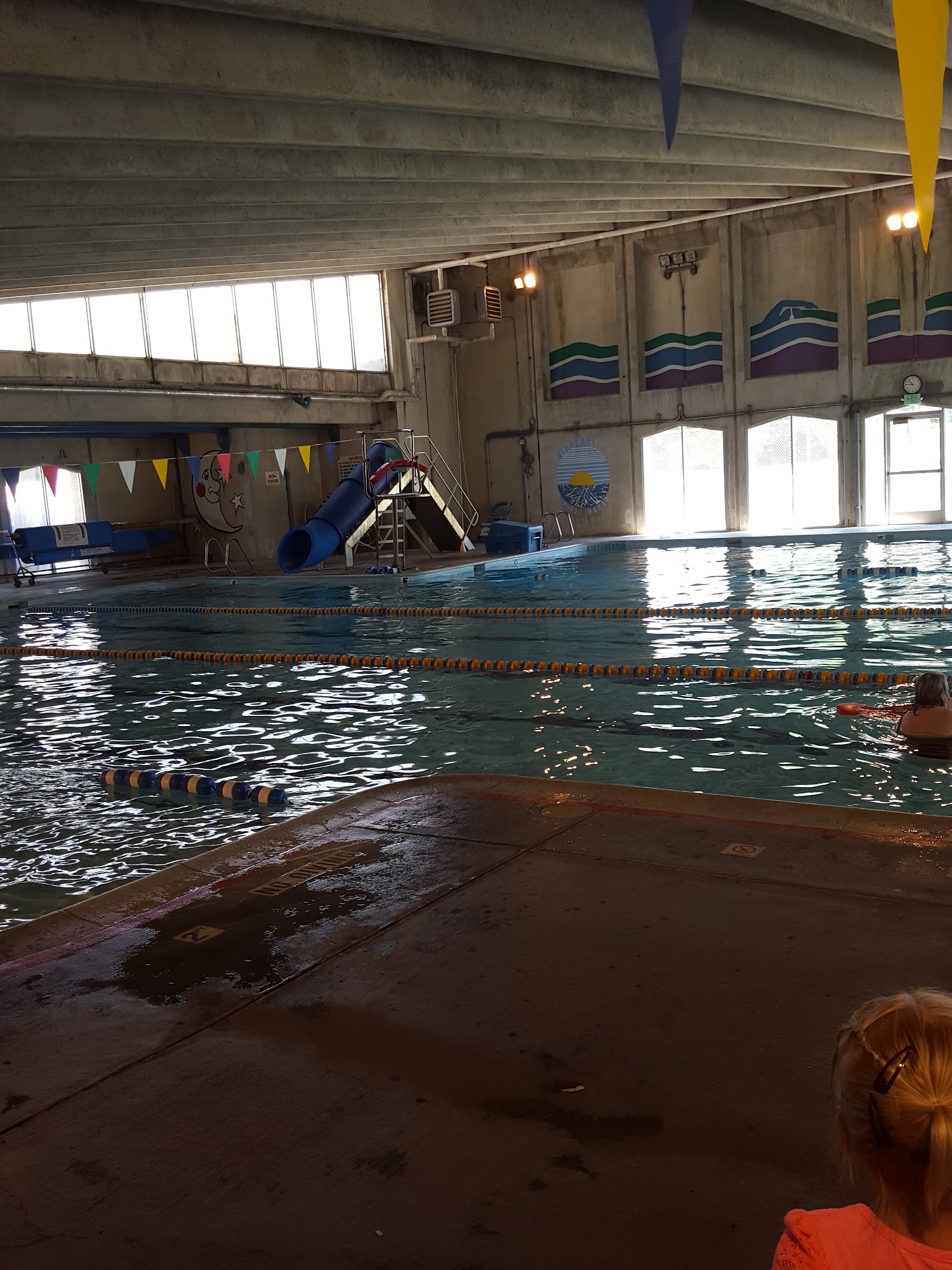 This local swimming pool is quite old and not well kept. The Lifeguard stations are thoroughly rusted and are not used, the windows are covered in mildew, and the walls don't look very great either. The place could really benefit from sandblasting or water blasting. Every time I am in there I worry about what I am breathing with all the mold and mildew. Really, they need to do some work on this place. Also, the water circulation and filter system is Extremely Loud. However, there is ample room for swimming laps and a nice deep water section for those of us who like to do specific exercises. The best part of this place is that the staff is really nice. Plus, it is situated in a nice park, where the kids can play afterward, and it has a view of the golf course behind it.