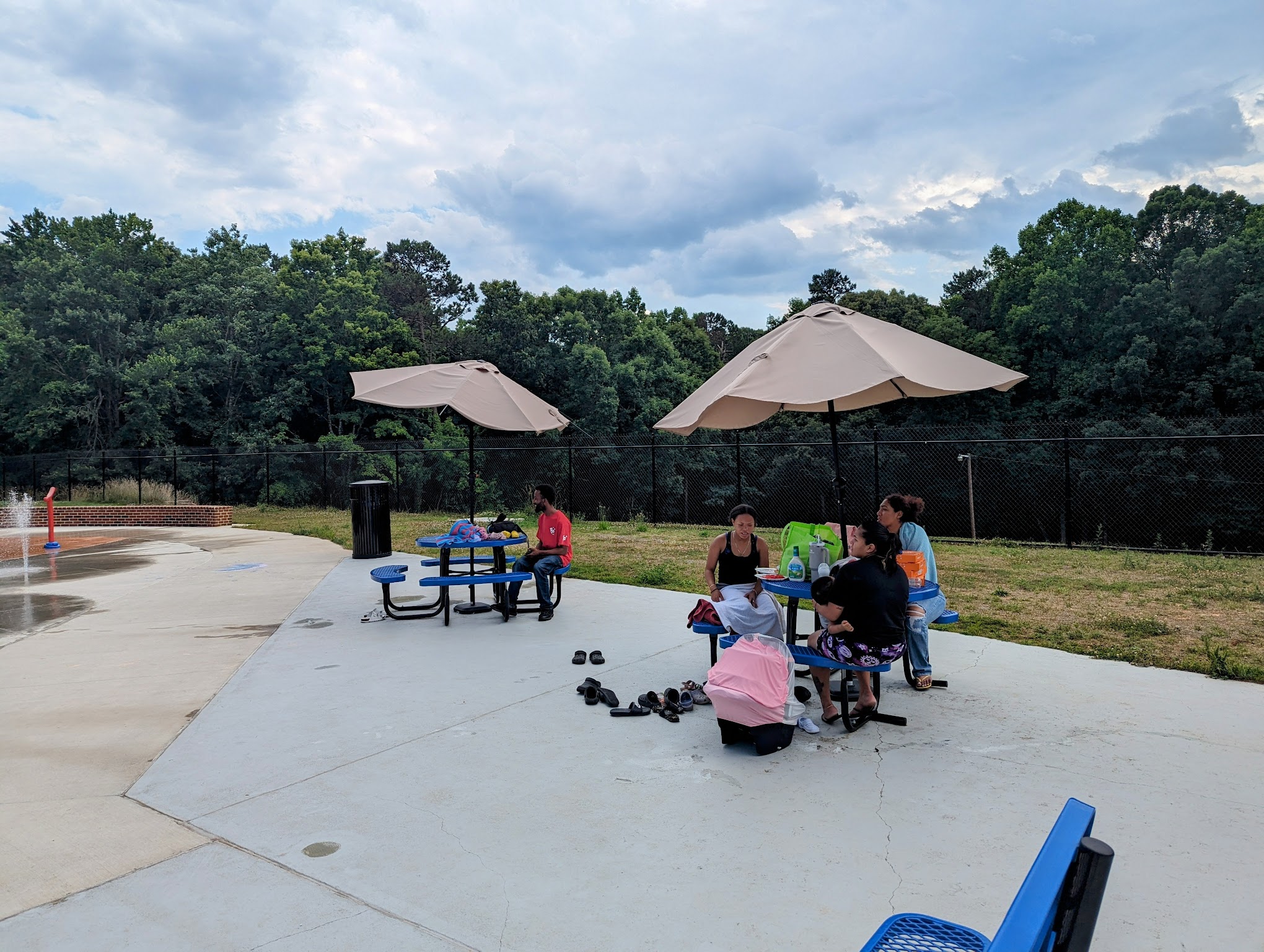 Pros- Best splash pad in Winston. Slide is very fun for kids and a unique feature. Clean and generally uncrowded. Cons- Area can be sketchy. I have seen homeless adults shower in the splash pad and other adults with no children sitting there smoking/yelling. Not ideal for a children’s area.