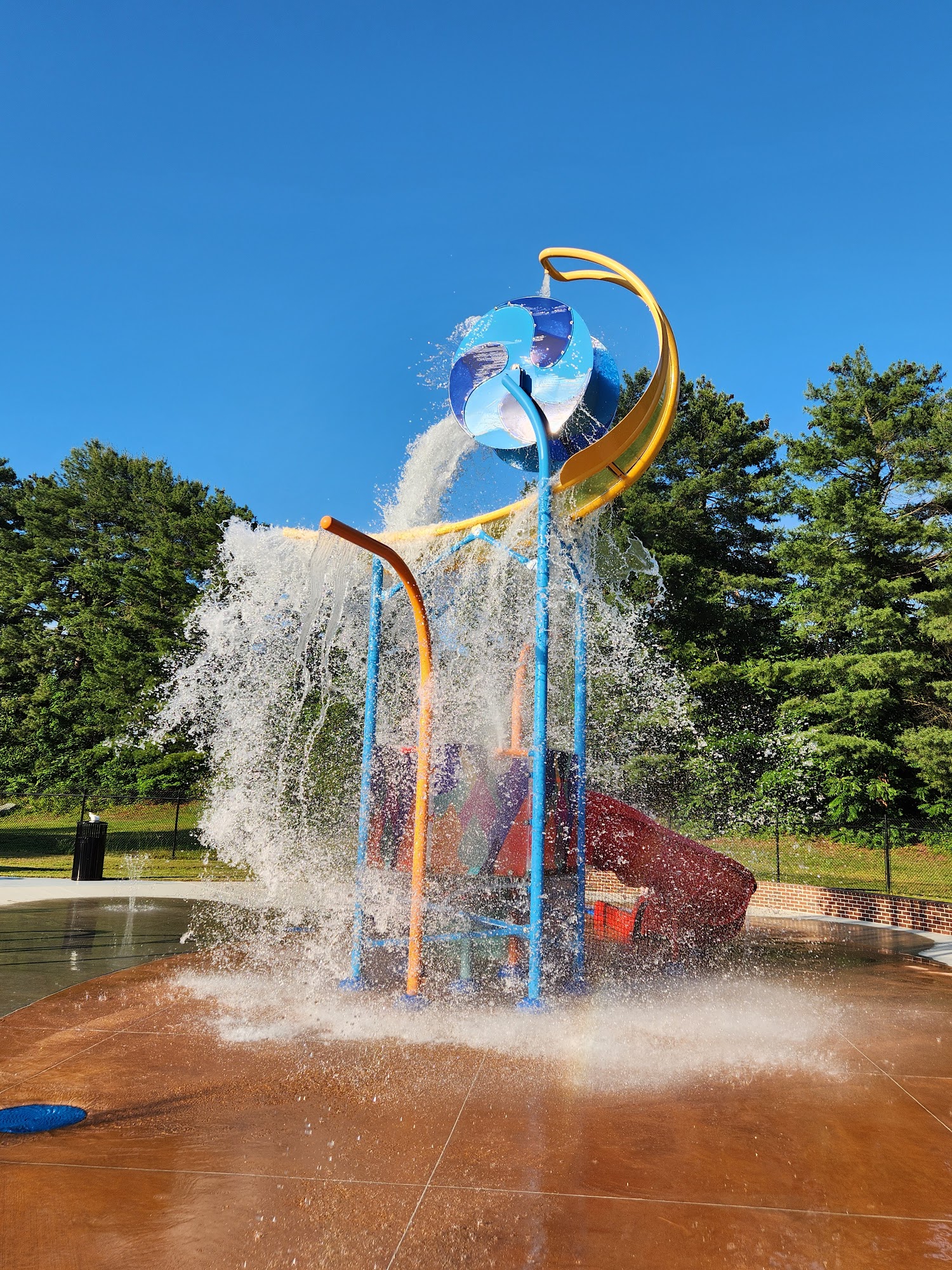 It's official, this is the best splash pad in Forsyth County behind Nelson Malloy. The splash pad occupied the area of the filled in Sprague Street Park Pool. The park has ample 🅿️ parking, 🚻 restrooms, and ♿ handicap accessible features. It is a gated splash pad with multiple picnic areas and even some umbrella coverage. The key features of this park is the huge bucket that dumps gallons of water every few minutes and the slide! This makes this park feel like a paid amusement park but it's free. They also have tons of 💦🌊 water features, water guns, mister areas, and geysers.