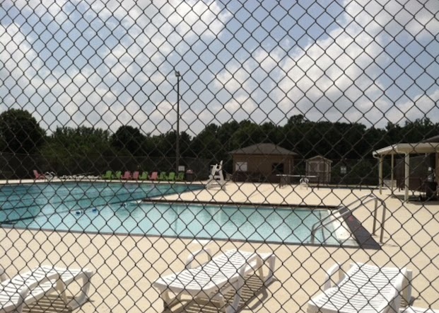 Basic pool setting featuring lifeguards, a 6-foot-deep swimming lane and a warm kiddie pool.
